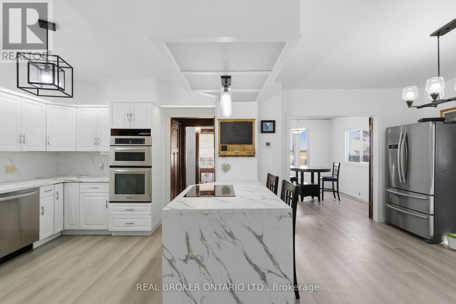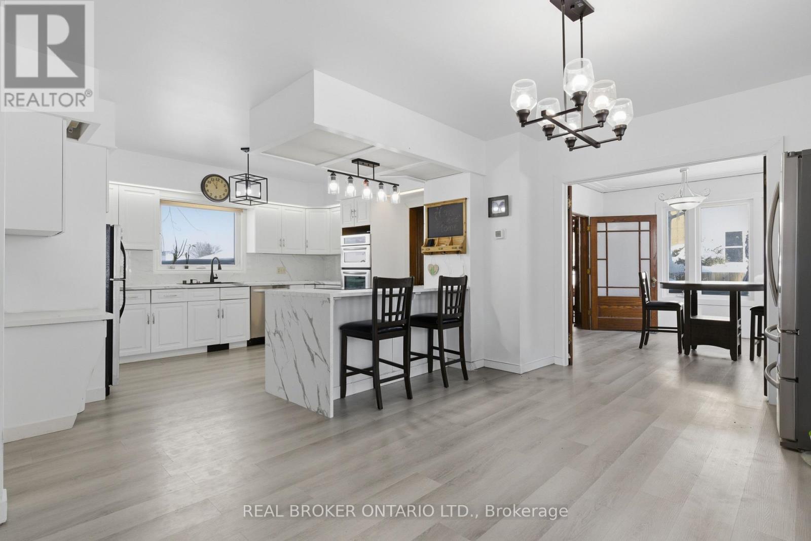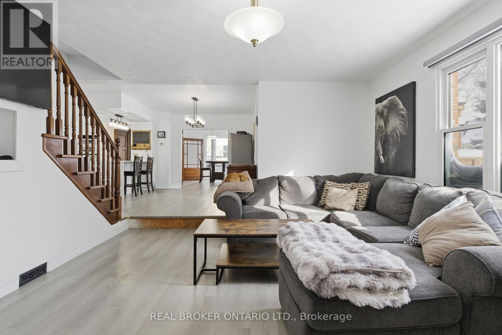 Welcome to a home designed to grow with your family. Set on a rare fully landscaped double lot, this spacious 5-bed, 2.5-bath residence offers the flexibility, privacy, and multi-generational living truly needs. The main floor was beautifully renovated in 2025, creating a bright open-concept layout-perfect for shared meals, celebrations, and everyday connection. Upstairs, renovations are in transition, giving the next owner the opportunity to add their own finishing touches and tailor the space to their family's needs. 2 separate staircases at either end of the home lead to a generous 2nd floor, enhancing flow and privacy for different generations under one roof. With 3 separate entrances, this home is easily adaptable for extended family living or could be converted to a side-by-side duplex, offering excellent potential for rental income. A large attic and spacious basement provide ample storage, keeping daily living clutter-free. Outside is where this property truly shines. The fully fenced backyard is a private retreat featuring an above-ground chlorine pool w/ a new liner, pump, and cover (2025), an upper deck (2022), a pool deck (2025), a basketball court for the kids, plus a large shed and pool house. Mature landscaping includes cherry blossom, lilac, and cherry trees, creating a peaceful, park-like setting ideal for family gatherings across generations. Major updates offer peace of mind: owned furnace, A/C, hot water tank, and water softener (2 y.o.), roof (2018), sump pump (2 y.o.), and garage door opener (2025). All appliances are included and in working order. The home features a stone and concrete foundation and has no known UFFI or asbestos. Ideally located within walking distance to Eastdale PS, LDSS, and the downtown core, this home offers both convenience and community. With flexible closing available, this is a rare opportunity for a multi-generational family-or a savvy buyer seeking future income-to put down roots in a home that truly does it all. (id:4555)