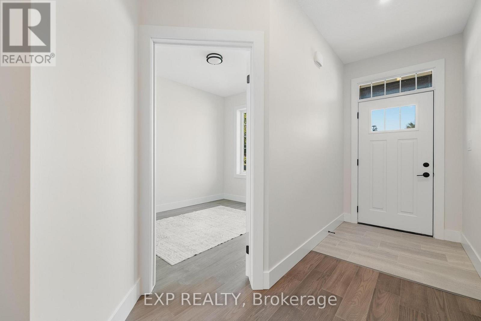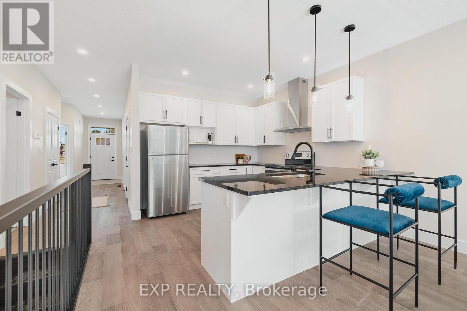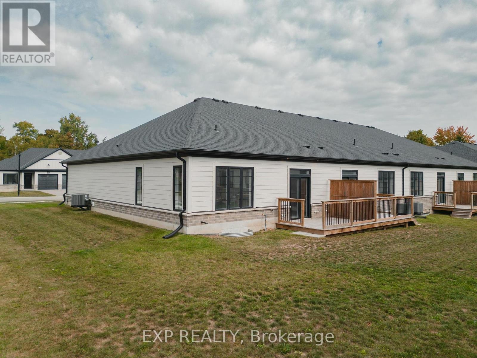Welcome to 12 Washington St, Unit 101 a beautifully staged end-unit bungalow townhouse offering the perfect blend of style, comfort, and convenience in the heart of Norwich. Step inside to find a bright and inviting kitchen, complete with quartz countertops, a sleek stove hood range, refrigerator, and dishwasher. The open-concept design is enhanced by 9-foot ceilings, pot lights, and elegant grey-toned hardwood flooring that flows throughout the main living space. Natural light fills the home, creating a warm and welcoming atmosphere. The primary bedroom is a true retreat, featuring two closets, a ceiling fan, and direct access to the spacious four-piece bathroom. The bathroom offers both a bathtub and a separate stand-up shower, and conveniently connects to the laundry room, which provides ample storage for everyday living. A second bedroom at the front of the home offers versatility for family, guests, or a home office. Downstairs, the unfinished basement presents incredible potential with a large egress window, a rough-in for a bathroom, an HRV system, and a 100-amp panel ready for your personal touch and future expansion. Outside, enjoy a private back deck with a privacy wall, perfect for relaxing or entertaining. The property also includes a one-car garage for added convenience. Located in a family-friendly neighbourhood, this home is close to all the necessities Norwich has to offer shops, schools, parks, and more. With its thoughtful layout and desirable features, this home is an excellent opportunity to enjoy comfortable living in a vibrant community. (id:4555)