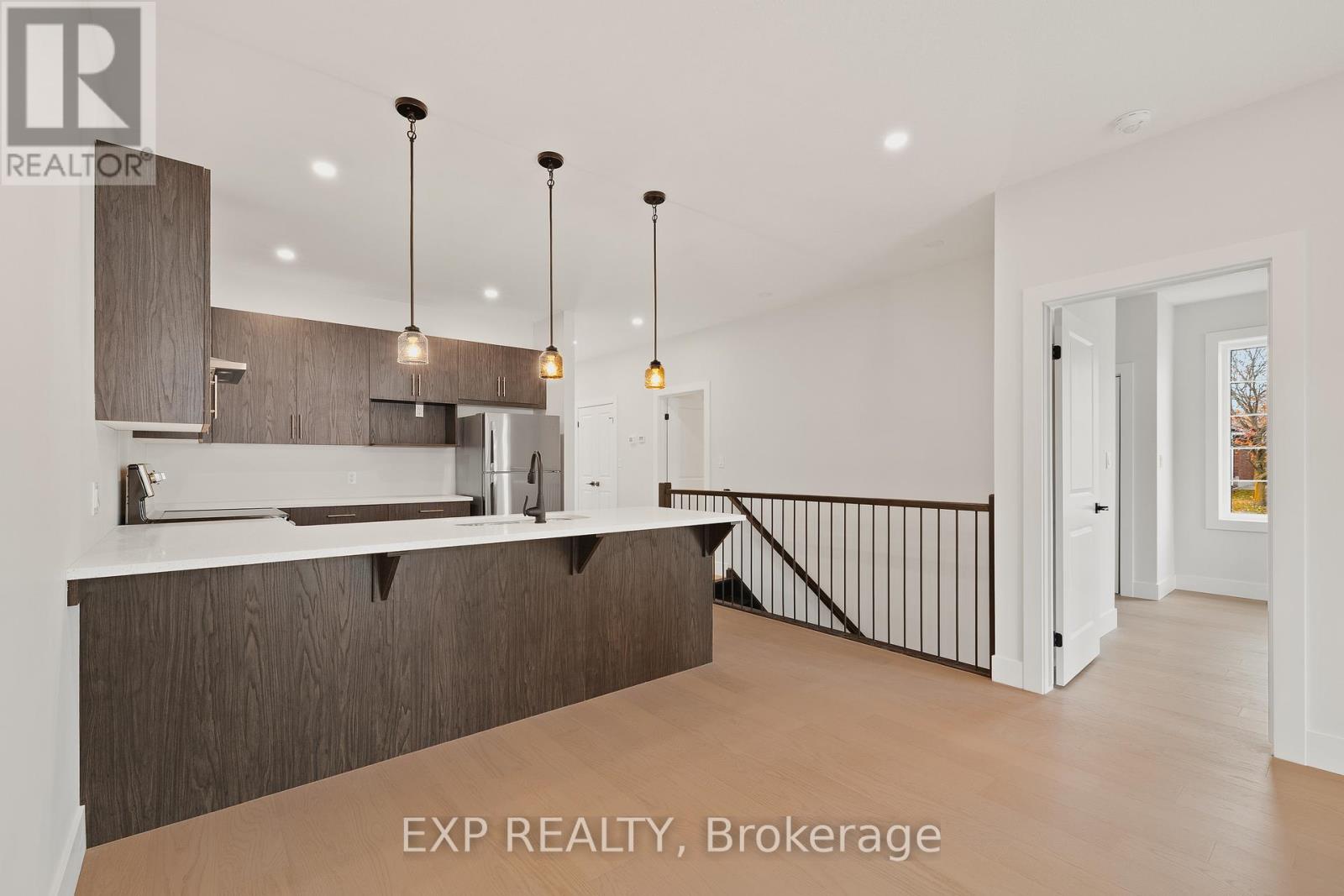 Welcome to 12 Washington St, Unit 201-a bright and inviting end-unit bungalow townhouse offering comfort, convenience, and modern living in the heart of Norwich. The stylish kitchen features quartz countertops, a sleek hood range, stainless steel appliances, and ample cabinet space. The open-concept layout allows the main living and dining areas to flow together seamlessly, enhanced by 9-foot ceilings and pot lights that create an airy and welcoming atmosphere. The primary bedroom offers both comfort and functionality with two closets and direct access to the spacious three-piece bathroom. The laundry room is conveniently located on the main floor, providing everyday practicality. A second bedroom on this level is perfect for family, guests, or a home office. The finished basement expands your living space with a large rec room ideal for relaxing, entertaining, or creating a cozy movie night setup. A third bedroom and a second full bathroom make the lower level a great space for guests or extended family, while still offering flexibility for your personal needs. Step outside to your private back deck, complete with a privacy wall-perfect for morning coffee, evening unwinding, or hosting a small gathering. The attached one-car garage adds convenience and storage. Situated in a friendly neighbourhood close to shops, schools, parks, and everyday amenities, this home blends comfort and low-maintenance living with a welcoming community feel. Unit 201 is the perfect opportunity for those seeking a well-designed home with functional space across both levels. (id:4555)