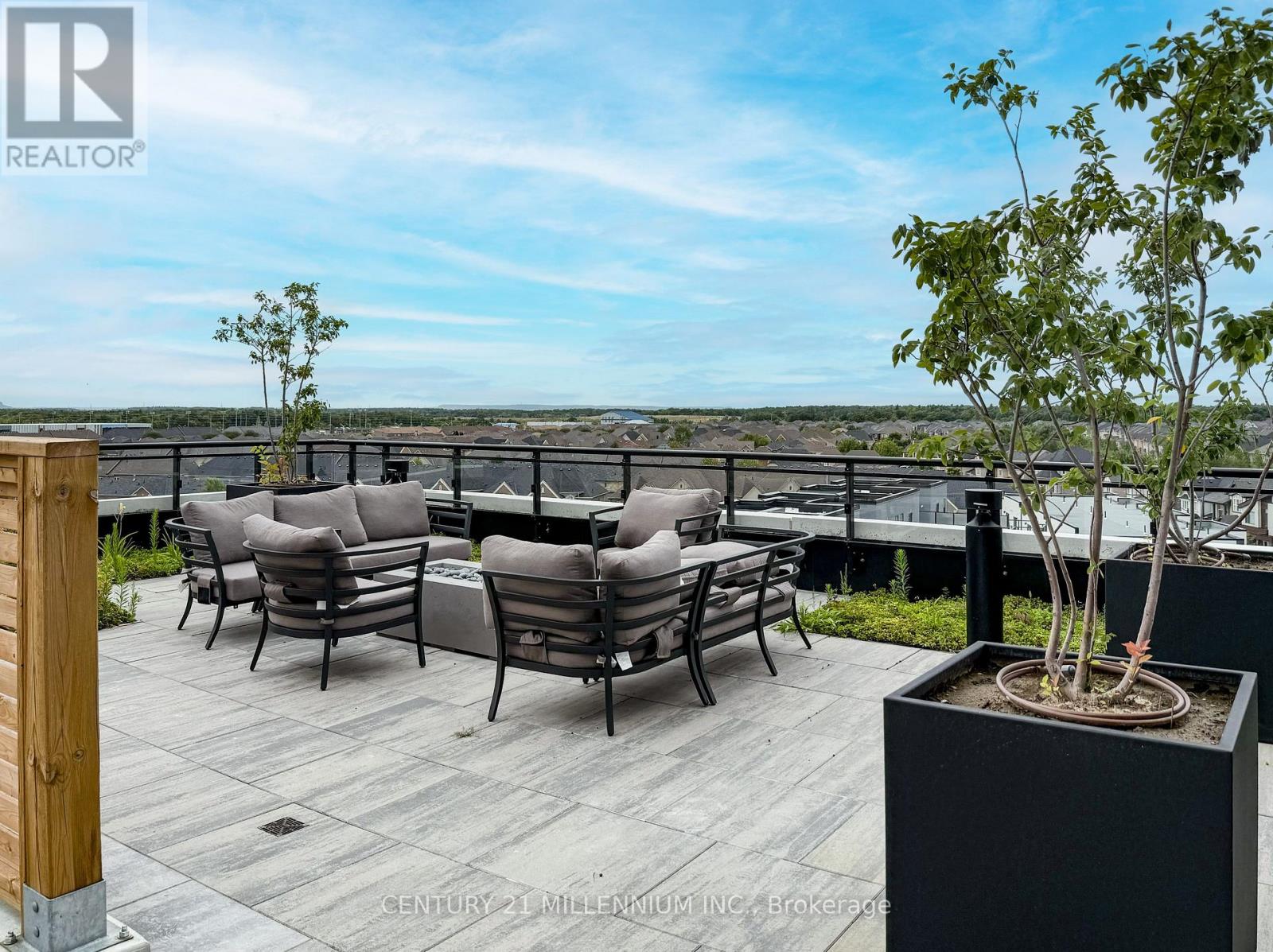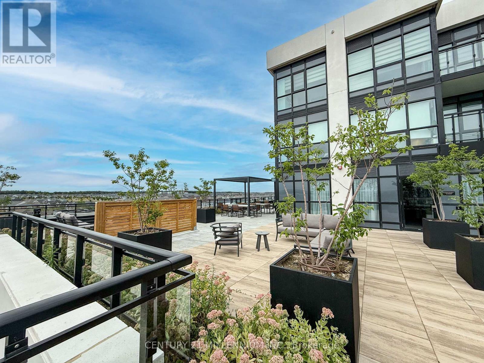Welcome to The Distrikt Trailside Condos in vibrant North Oakville! Suite 810 offers penthouse-style living - no unit above you - with 9' ceilings in the main area, an open layout, and bright floor-to-ceiling windows framing beautiful city views. This stylish 1 Bedroom + Den suite includes 1 Parking + 1 Locker, and features modern finishes throughout: quartz countertops, tile backsplash, under-cabinet lighting, and a full suite of stainless-steel appliances. The smart home system with digital door lock and in-wall touchscreen lets you manage heating, cooling, amenity bookings, and building access right from your unit. Enjoy your morning coffee on the private northeast-facing balcony, or take advantage of the impressive building amenities - rooftop terrace with BBQs, fitness and yoga studios, pet spa, party and billiards rooms, and 24-hour concierge service. Steps to grocery, restaurants, and everyday essentials - plus easy access to Highways 407/403, GO Transit, parks, trails, and Oakville Trafalgar Hospital. Experience turnkey, contemporary living with unbeatable convenience in one of Oakville's most sought-after neighbourhoods. (id:4555)