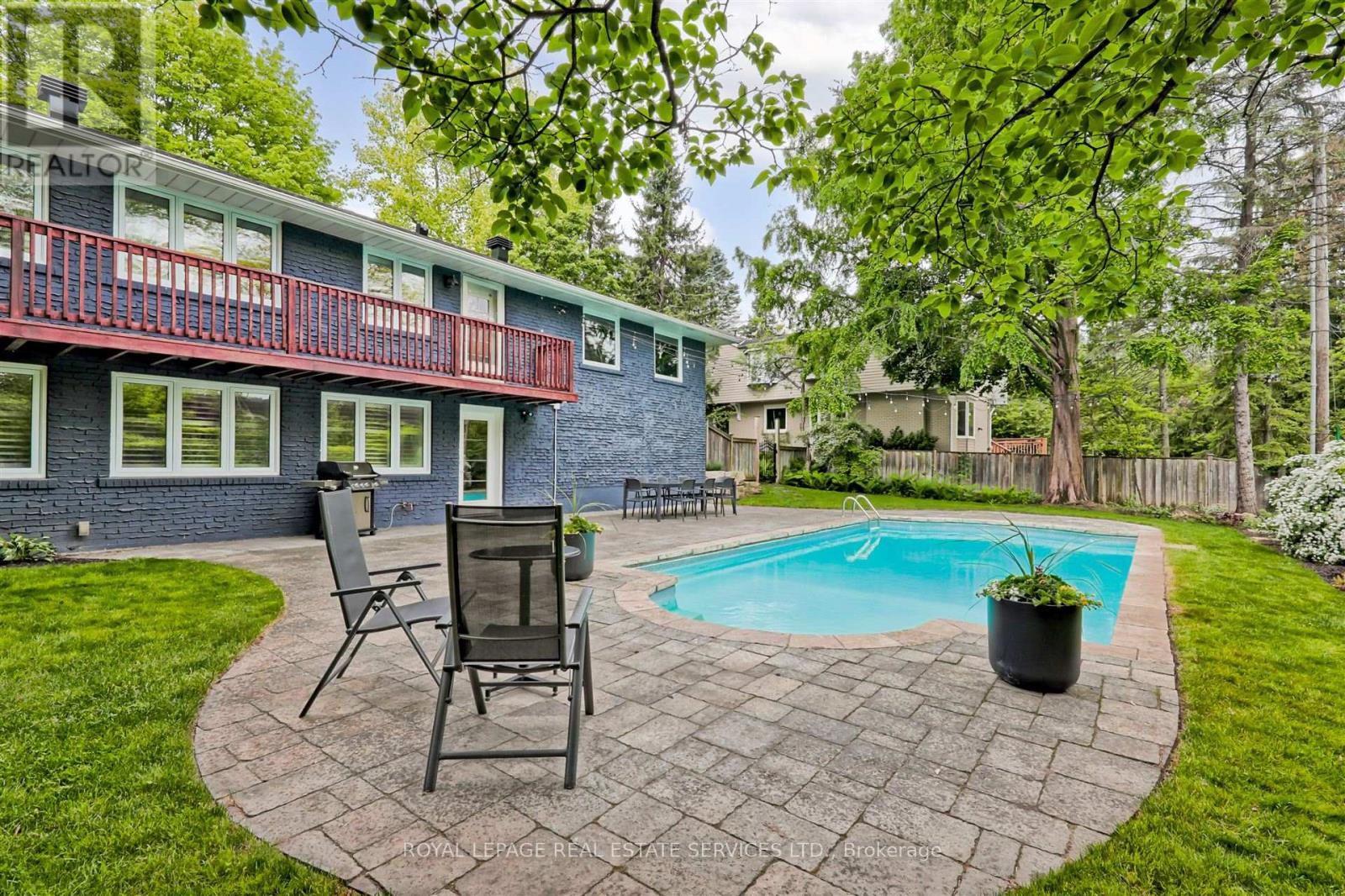 This private, quiet, lush 101 x 149ft lot is simply spectacular with it's beautifully manicured and maintained gardens. Spend every warm moment relaxing around the pool and taking in nature with the Morrison Creek just outside the property boundary. It's like living in the country but you're within walking distance of downtown Oakville.The home itself has been tastefully updated. The floor plan and layout make it perfect for families and down sizers. The lower level is above ground with a walk out to the pool and the back of the home is bright and inviting. Currently used as an in-law suite but as it's not segregated from the home no conversion required. You need to see this one! (id:4555)