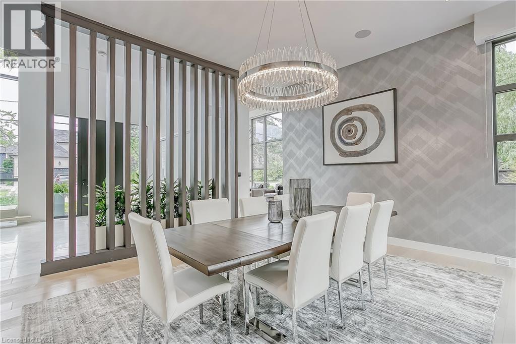 With a stunning backyard, 5,196 sq ft of above ground living, and quality construction built by Gatestone Homes, this home is truly the total package. Stone, wood, and striking Anderson windows have been eloquently incorporated on the exterior of the home, lending to the superb curb appeal. The thoughtful design fuses modern style with timeless elegance. The foyer of the home feels as though you are entering a luxury hotel, with a stunning floating staircase and a custom hanging light feature that is a piece of art in itself! The soaring two-storey foyer is flooded with natural light from oversized windows, creating a bright and welcoming space. A custom wooden piece subtly divides the foyer from the traditional dining room that is complete with a temperature-controlled wine room and glass doors that invite you to enjoy the expansive rear deck. The heart of the home is the open concept kitchen-family-dining space that is surrounded by windows and grounded by a beautiful gas fireplace. With an oversized island there is no shortage of space for you and your guests. Adjacent to the kitchen is a conveniently located powder room as well as a laundry/mudroom that can be concealed by a pocket door. The primary suite is a true oasis. With double door entry, a gas fireplace, and five-piece ensuite, no detail was overlooked. The three additional bedrooms all have ensuite access and walk-in closets. Completing this level is a laundry room and study area with built-in desk space. The 2,712 sq ft lower-level walk-up will not disappoint. The large recreation space features a built-in projector, billiards space, and wet bar. A home gym and two additional bedrooms as well as playroom/second home office finish off this space. Lush mature trees combined with meticulous landscaping will lure you to the rear yard. With approx. 1800 sq ft of outside living space, a gunite pool, and cabana, this backyard checks all the boxes! Enjoy the beautiful summer weather in this retreat-like home! (id:4555)