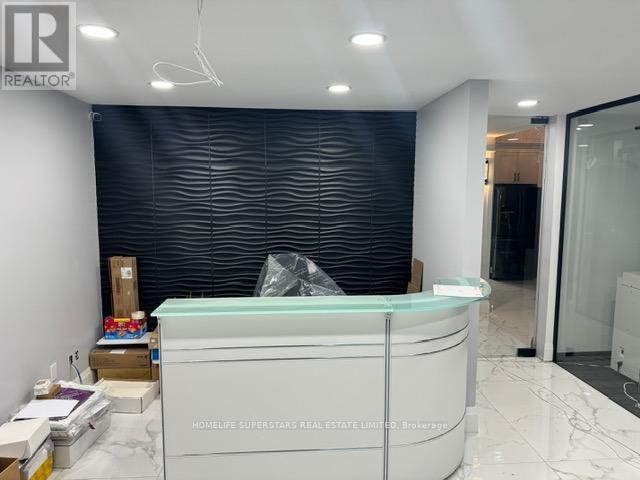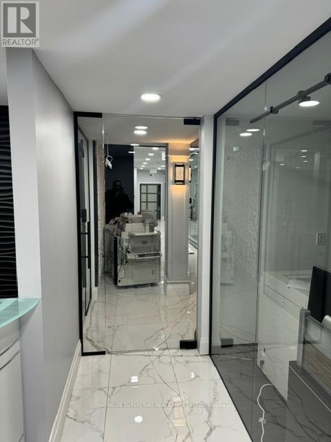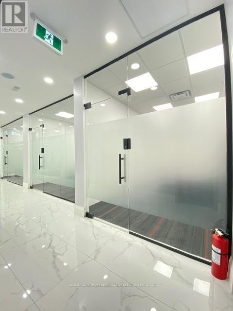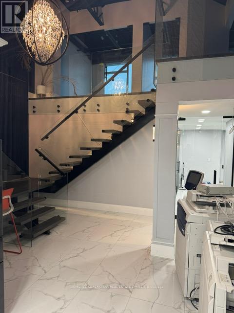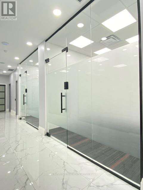 This beautiful office building combines modern design with everyday functionality, offering 1,830 sq. ft. of space plus a 400 sq. ft. mezzanine. The mezzanine includes three private offices and a comfortable coffee area, while the ground floor features seven well-appointed offices, a tastefully designed reception, and a modern kitchen that leaves a lasting impression on clients and staff alike. With two washrooms, including one with a shower for those who enjoy a workout before or after work, the building is designed with comfort in mind. A fridge, range hood, microwave, and dishwasher are already in place, making the space move-in ready. Each office is fully sound insulated for privacy and productivity and has Ethernet cable installed. Elegant finishes, including professional modern carpeting, tempered glass stair railings and doors, and stylish interior details, create a sleek and professional environment. Bright and Beautiful Tile on The Hallway, Spectacular Full-Height Windows Allow Natural Light, Minutes to Hwy 403, On the Border of Mississauga and Oakville. Partially leased. Photos before leased offices. Showing will be after 7 PM OR on Sunday. (id:4555)