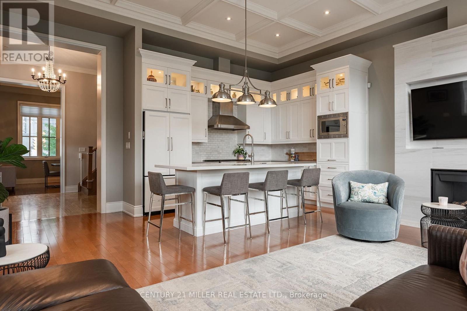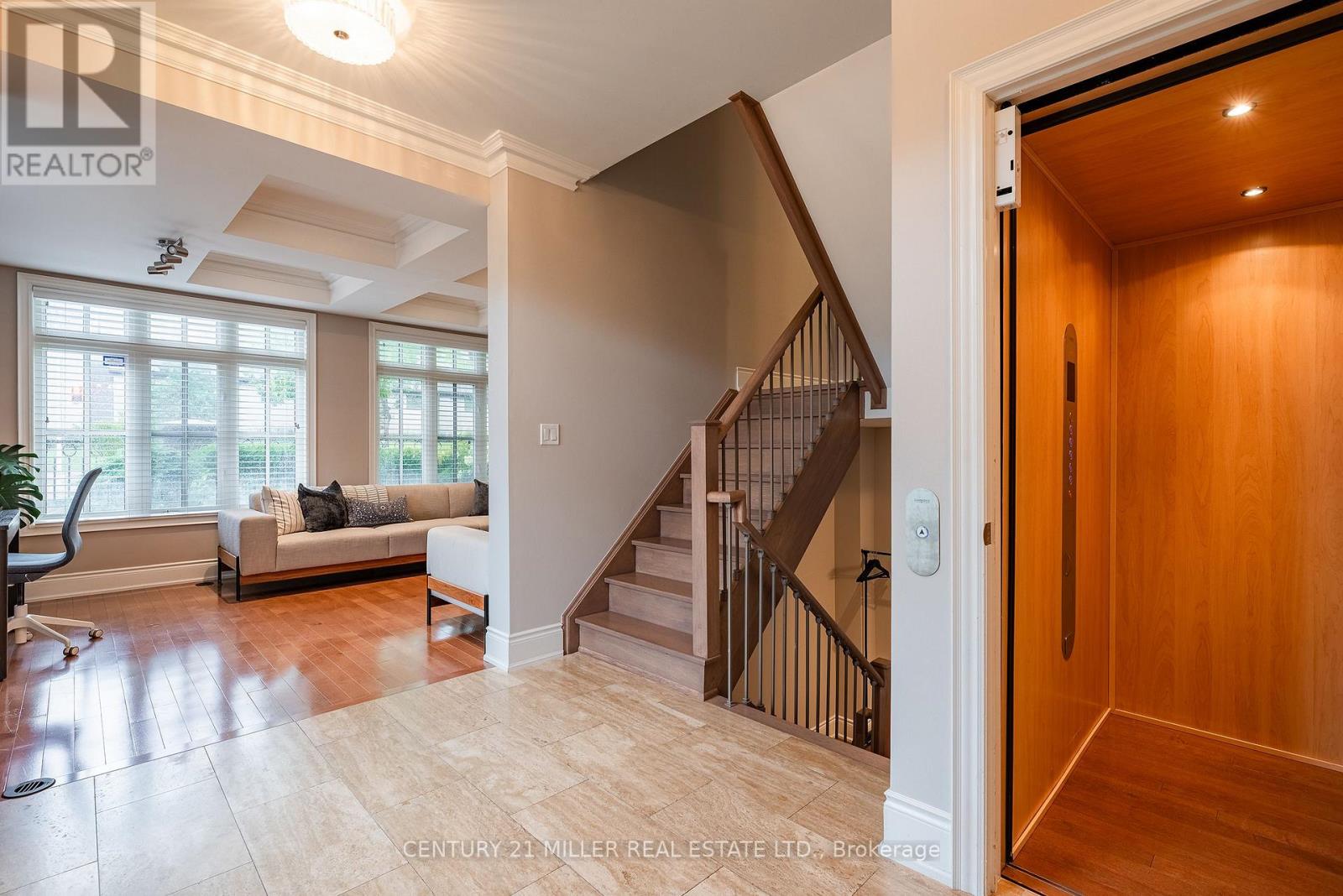 NEW, MASSIVE PRICE REDUCTION! Welcome to Village West a boutique enclave of upscale freehold townhomes set in Oakvilles downtown core. This rare end-unit feels more like a New York loft than a traditional townhouse. With soaring 12' CEILINGS and loaded with huge windows throughout, the interior is defined by its sense of volume, openness and sunlight. Where every room feels generous in scale and effortlessly connected. From the moment you step inside, you'll notice the proportions: expansive principal rooms, wide hallways, tall door thresholds, and wide staircases with oversized landings. The dining room is truly grand, while the adjoining kitchen and family room are framed by a dramatic, sky-high coffered ceiling. The kitchen has been FULLY RENOVATED, featuring high-end appliances, sleek finishes, and a layout designed for both everyday living and entertaining. Hardwood flooring runs throughout the home, complemented by TWO FIREPLACES and the convenience of a private ELEVATOR to every level. The double-car garage is oversized, providing not only secure parking but also ample room for storage. On the main level, a flexible office/sitting room overlooks the landscaped front and side gardens, where mature plantings and trees create privacy and a lush green outlook. On the third level, two very large bedrooms, each with its own ensuite, are generously proportioned making them a flexible space for various needs. The outdoor living is equally impressive. A 650 sq ft SOUTH FACING TERRACE offers a private retreat with enough room to entertain on a large scale or simply unwind in peace. The lower level extends the living space even further, perfect for a home gym, office, media room, or whatever suits your needs best. Village West is as practical as it is refined. This enclave is beautifully maintained, with a welcoming atmosphere and neighbours who take pride in their homes. Desirable location just steps to downtown Oakvilles shops, dining and the lakefront parks. (id:4555)