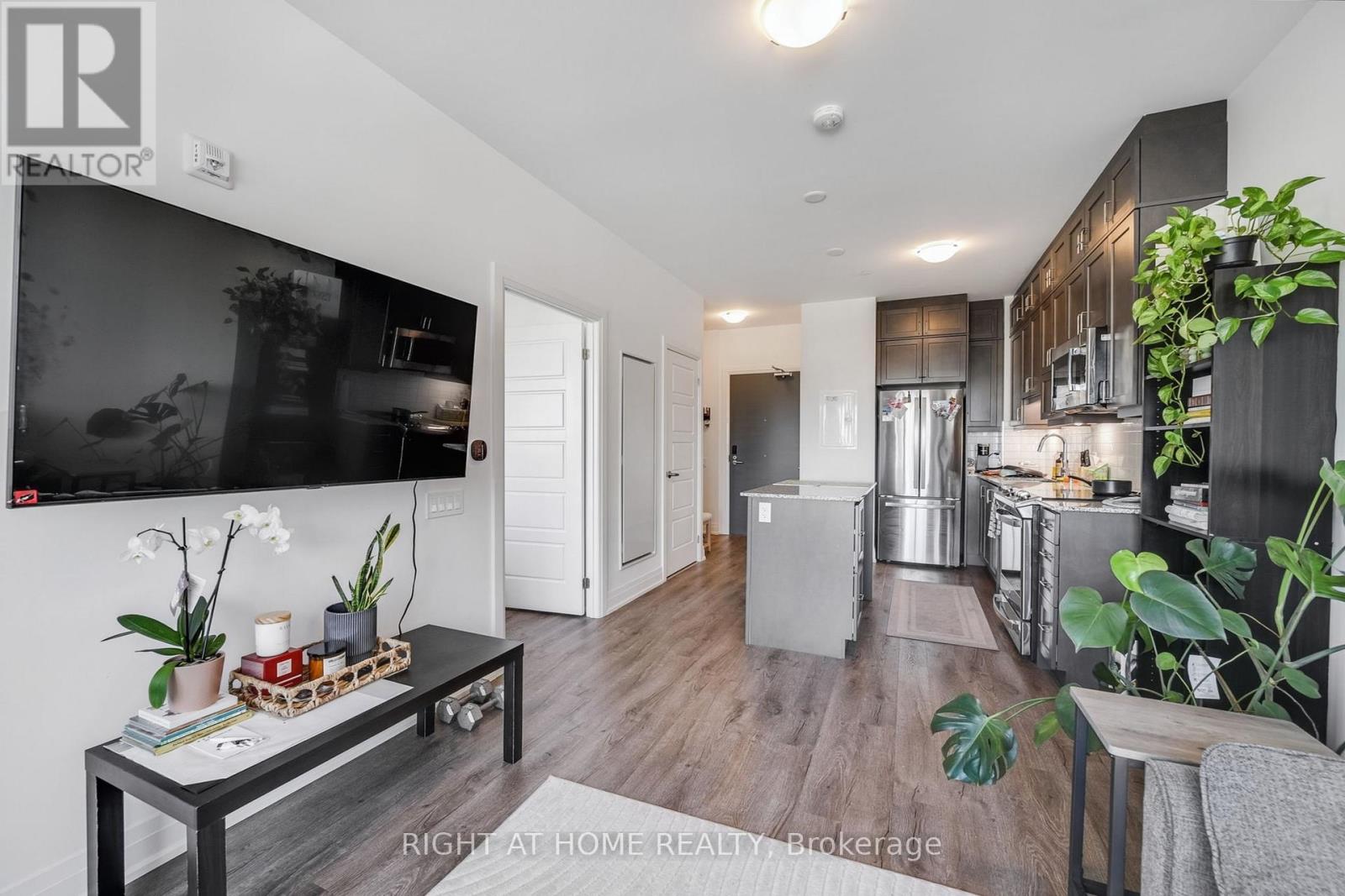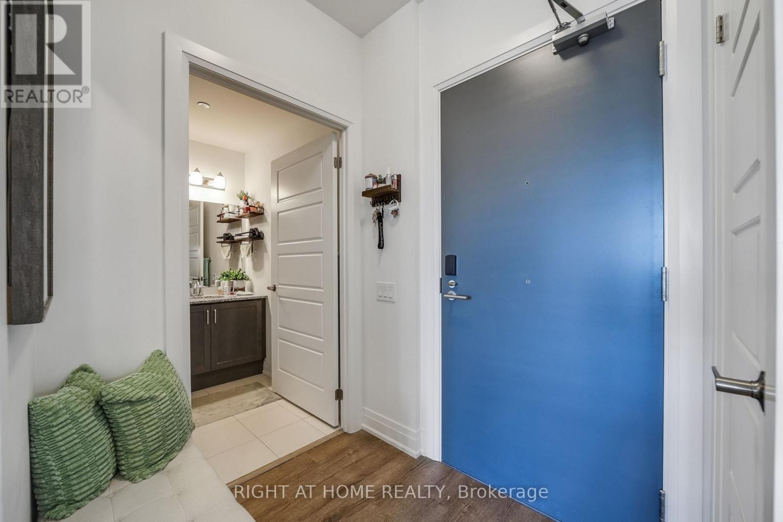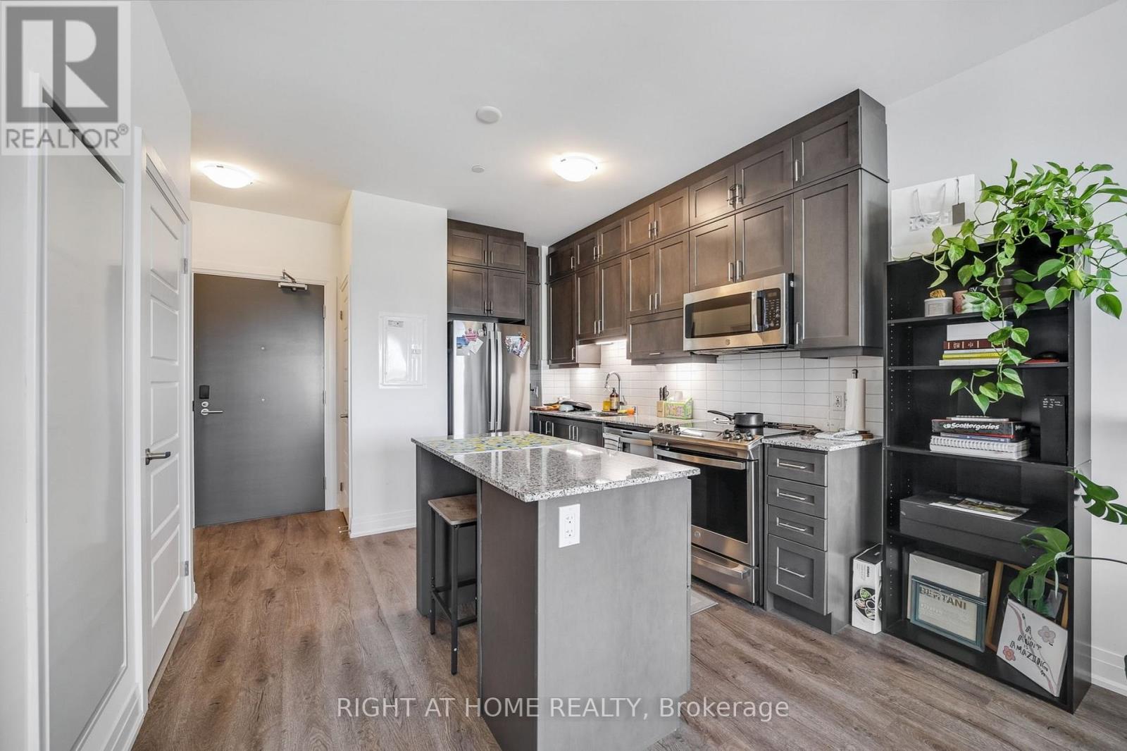 Exceptional 1-Bedroom Condo at Views on the Preserve - Upper Oakville's Premier Address. Discover the perfect balance of sophistication and functionality in this stunning Upgraded 1-bedroom residence at Views on the Preserve, located in the prestigious Preserve community of Upper Oakville. Built by Mattamy Homes, this boutique-style condominium offers a thoughtfully designed layout with upscale finishes and a modern aesthetic focused on comfort and convenience. Boasting soaring 9-foot ceilings and expansive west-facing windows with custom blinds, this bright and airy suite is bathed in natural light throughout the day. Step onto your private balcony to unwind and enjoy breathtaking sunset views. The open-concept living space features scratch-resistant vinyl flooring and a refined contemporary design. The chef-inspired kitchen impresses with stainless steel appliances, Stacked upper cabinets, a spacious centre island with extra storage, quartz countertops, a subway tile backsplash, and premium soft-close cabinetry. The large wheelchair accessible bathroom includes a spacious tub, elegant subway tiles, and thoughtful design for maximum comfort and ease of use. Modern smart home features include an Ecobee thermostat and an energy-efficient geothermal heating and cooling system. Residents of this boutique community enjoy exclusive amenities such as a rooftop lounge and party room with an outdoor BBQ terrace overlooking the pond. The suite also includes one underground parking space and a conveniently located locker. High-speed Rogers Internet is included in the maintenance fees. Ideally situated in one of Oakville's most desirable neighbourhoods, this home is just minutes from top-rated schools, premier shopping, transit, Oakville Trafalgar Hospital, and major highways. A rare opportunity to own a luxurious condo in an unbeatable location-don't miss your chance! (id:4555)