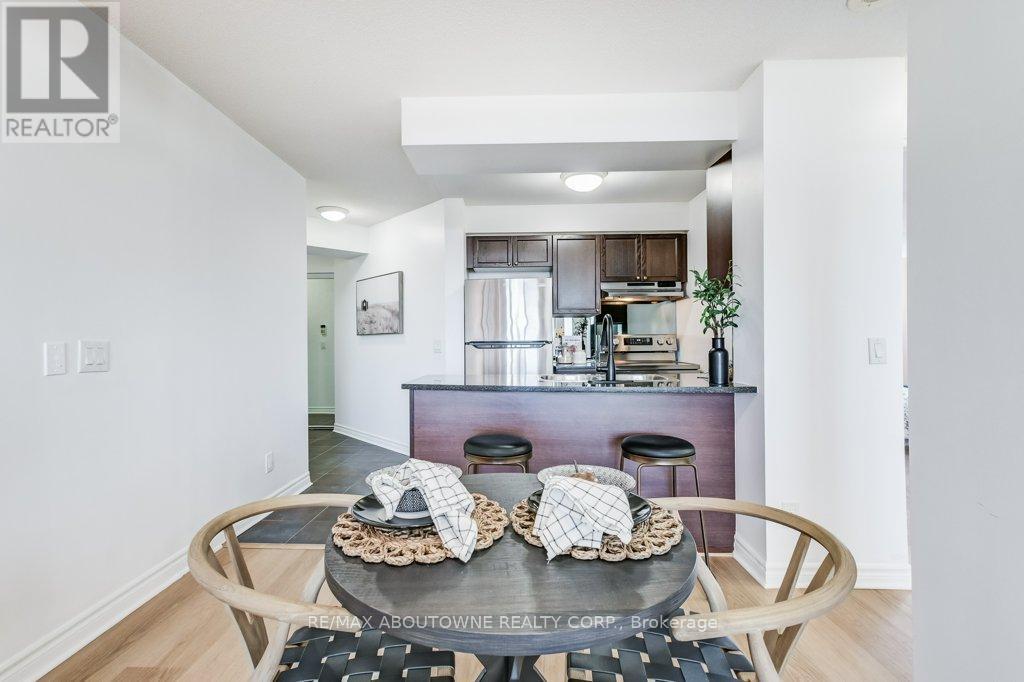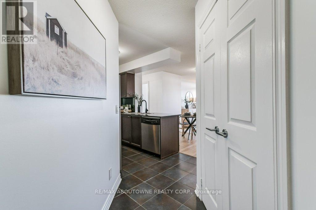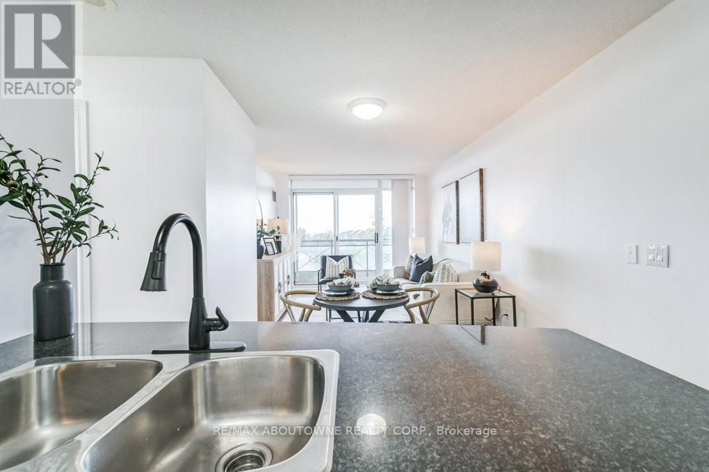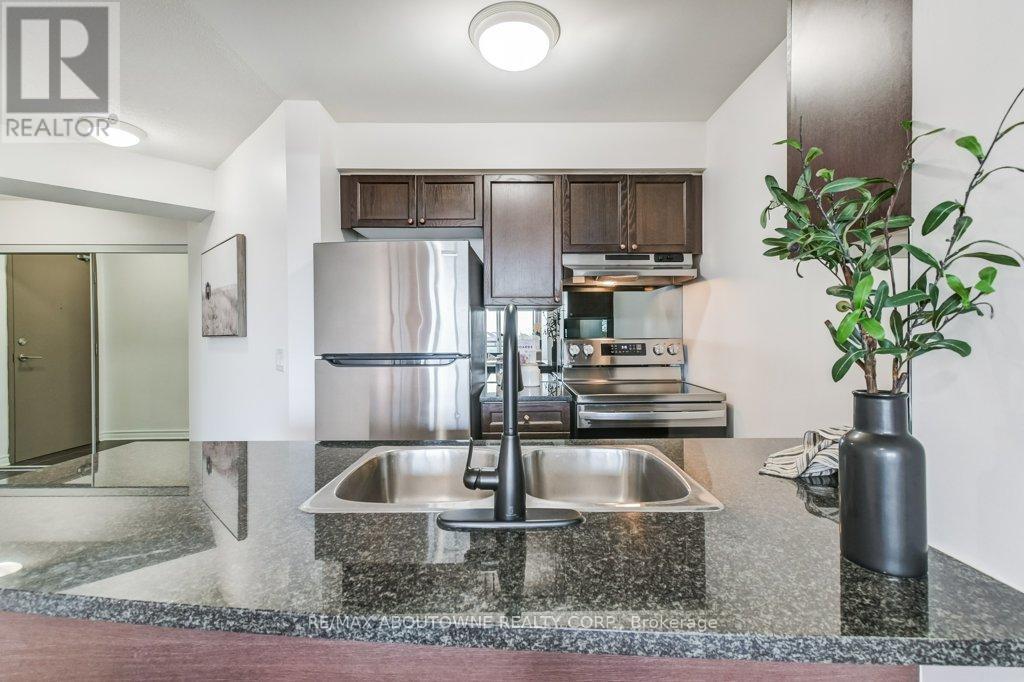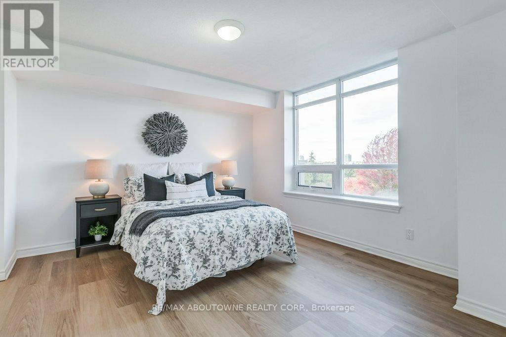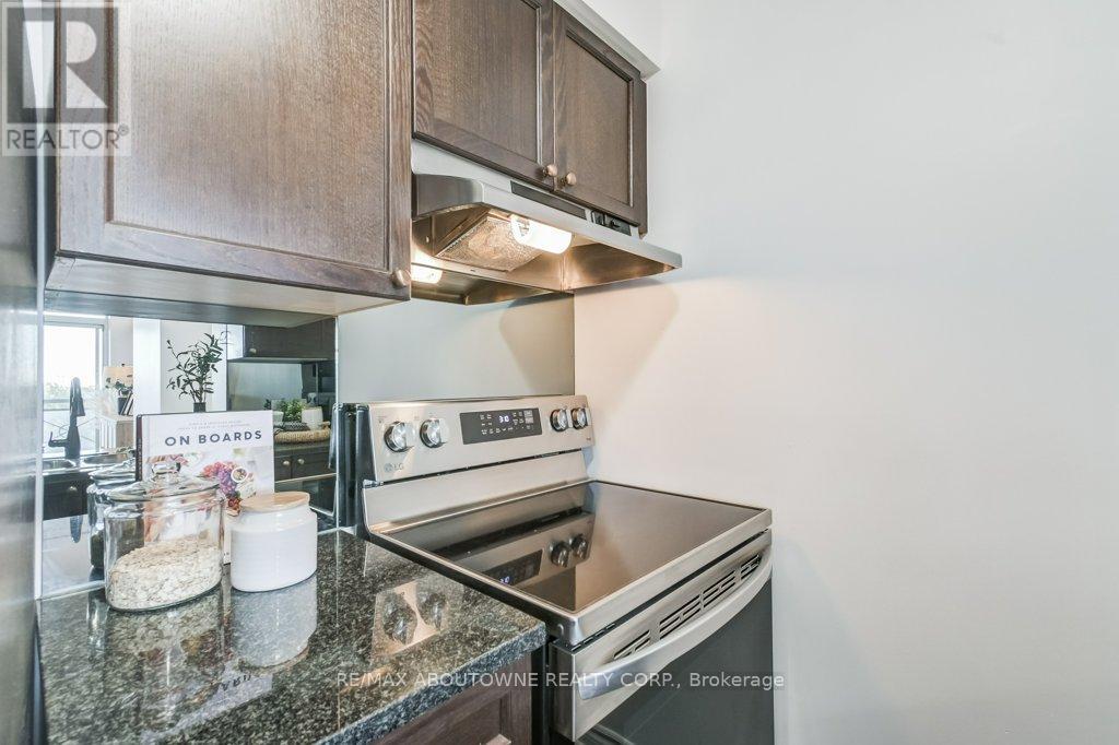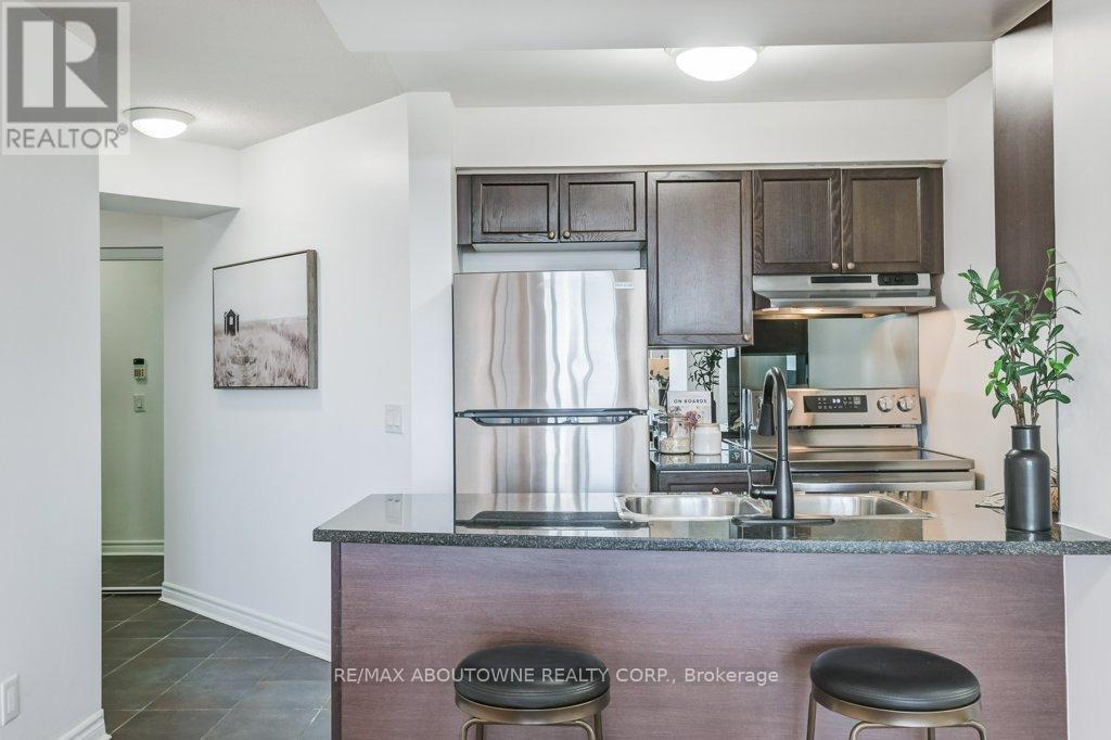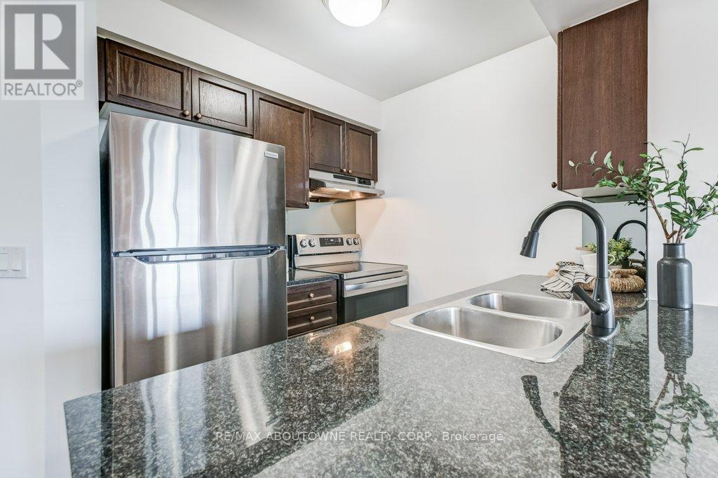 Welcome home! This stunning corner unit will be sure to impress even the most discerning Buyer offering approximately 850 square feet of well appointed modern sun-filled living space. This gorgeous corner suite has an open concept layout and features 2 spacious bedrooms, 2 full bathrooms, convenient ensuite laundry and many recent updates including stainless steel appliances in the kitchen, renovated bathrooms, fresh paint and new flooring throughout. The spacious primary bedroom has a 3-piece ensuite and is the perfect retreat after a long day. The functional design makes it a great space for both entertaining and relaxing alike and flows perfectly onto the balcony which has unobstructed panoramic south west views and is the ideal spot to enjoy a coffee in the morning or unwind and watch the sun set. The building amenities include a party room, exercise room, an outdoor pool with lots of lounge chairs and a community bbq area. Located in the desirable and highly walkable Oak Park Community, this suite is a quiet escape from the city, with many nearby parks and walking trails and is near Sheridan College, shopping, restaurants, transit and major highways. Enjoy all that Oakville has to offer in this beautiful unit in a well run building. (id:4555)