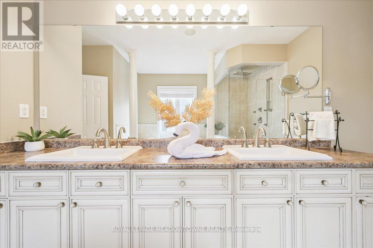 Nestled in Oakville's prestigious Joshua Creek sits this Fernbrook built 4 bed 4+1 bath beauty with over 5000 square feet of finished living space. Rare upgrades including 9 foot main level ceilings, 9 foot basement and upper level makes this home stand out from the crowd. Over $150K spent on landscaping and a large ionizer pool in the backyard give this home privacy, and beautiful views from every window. First time offered on market & true pride of ownership in every corner of this home is evident as this home has been loved and enjoyed by only 1 family since built in 2007. Oversized kitchen with large island, lots of cabinet space & butler pantry make this a dream chef's kitchen for entertaining family and friends. Large primary bedroom with fireplace and private sitting area, 2 large closets, and 5 piece ensuite with double vanity feels like a private oasis. Bedrooms 2 & 3 share a beautiful bathroom, while bedroom 4 has it's own ensuite and is perfect for a spare room. The basement is an entertainment masterpiece with large recreation room, pool table, wet bar, full bath with steam shower & Home Theatre Room with 110" screen and 7.2 surround sound. Whether looking for an executive home that is move in ready, or wanting to be in Oakville's best school district, this home has it all. (id:4555)