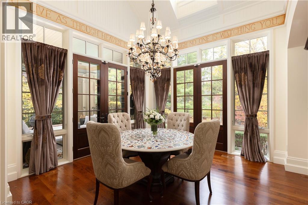 An architectural masterpiece by renowned Gren Weis, this exceptional residence offers over 10,000 sq. ft. of luxurious living space on more than ½ an acre in one of Oakville’s most desirable lake-influenced neighbourhoods. Showcasing soaring ceilings, extensive millwork, and superb craftsmanship, the home features spacious, elegant rooms and a seamless flow for entertaining. All bedrooms include ensuite baths, while the lower level impresses with a wine cellar and theatre. Outside, enjoy covered terraces, a built-in outdoor kitchen, luxury cabana, mature gardens, and a stream with bridge surrounded by landscape lighting. A classically inspired front fountain and spectacular landscaping enhance the property’s distinguished presence on an important street. Close to top private and public schools, this private estate blends timeless design, quality, and sophistication in a truly remarkable setting. Luxury Certified. (id:4555)