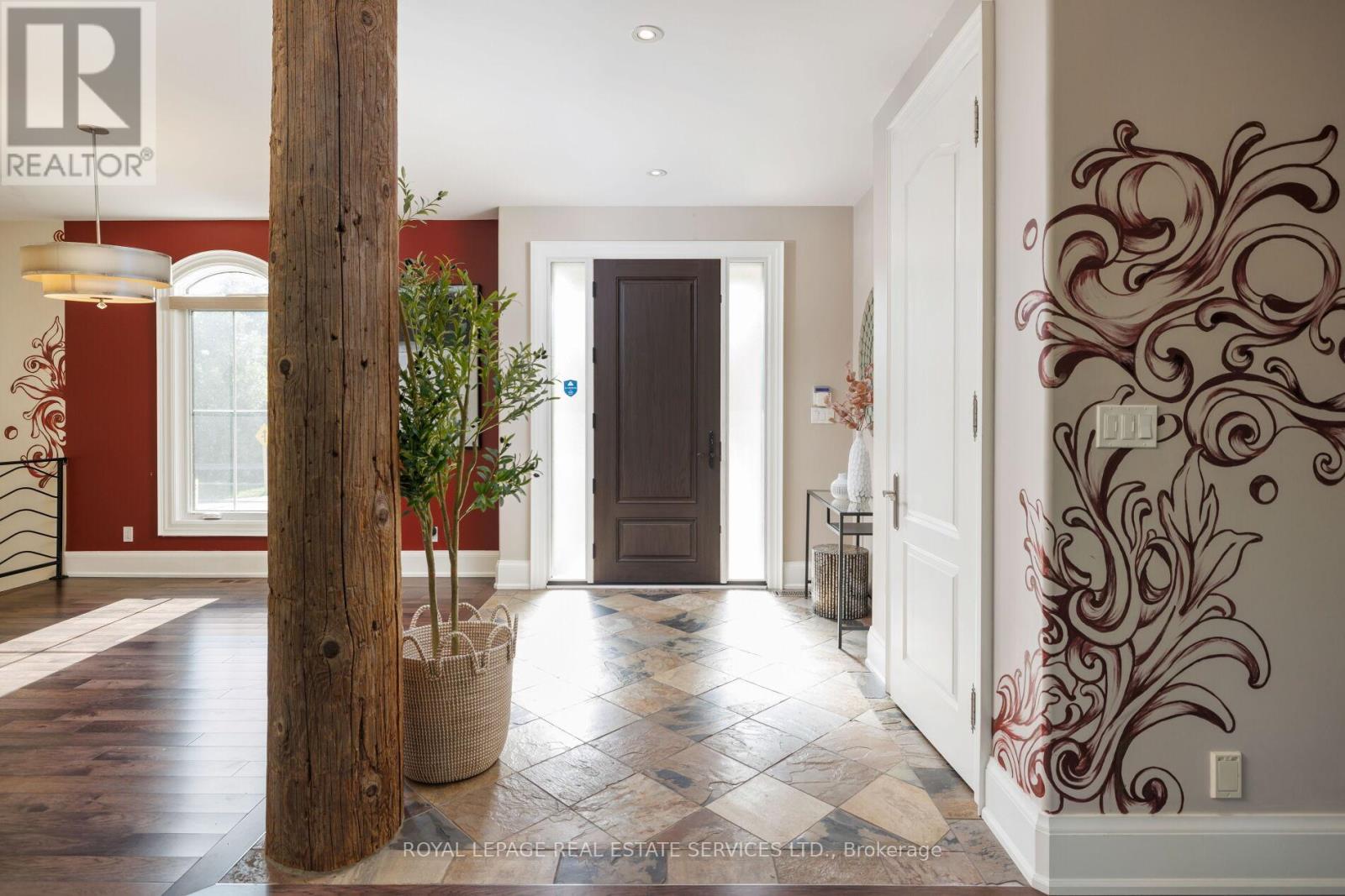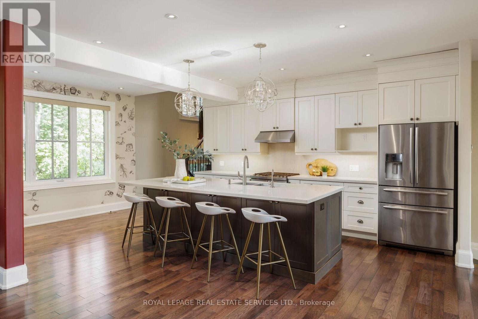 A remarkable lifestyle awaits in Oakvilles highly sought-after West Oakville community, where every convenience is just steps away. This exquisite custom raised bungaloft, redesigned in 2016 by Keeren Designs, backs directly onto the scenic Donovan Bailey Trail & is only a 3-minute walk to the Queen Elizabeth Park Community & Cultural Centre. Enjoy nearby Bronte Harbour, Lake Ontario, waterfront parks, & Bronte Villages shops & restaurants, all just minutes away, with quick commuter access to Bronte GO Station & the QEW/403. Showcasing undeniable curb appeal, this luxury home features a stucco facade with accent shutters, stone steps leading to a covered entry with columns & iron railings, interlocking stone walkways, professional landscaping with mature trees, a 9-zone irrigation system, & exterior cameras. The private backyard retreat offers upper & lower stone patios, gardens with armour stone accents, evergreens, & direct trail access. Inside, the residence boasts 2+3 bedrooms, 2.5 bathrooms, & a versatile loft perfect as a bedroom, home office, or studio. The 2016 transformation added a gourmet kitchen, wide-plank hardwood, designer tiles, custom built-ins, deep trim, built-in speakers, & expandable Control4 smart home automation. Designed for comfort & entertaining, the open-concept main floor offers 9 ceilings, family room with gas fireplace, spacious dining room, & chefs kitchen with custom cabinetry, quartz counters, oversized island with seating for 6, high-end appliances, & a breakfast area with walkout to the backyard. The primary suite showcases 2 walk-in closets & a spa-inspired 4-piece ensuite with soaker tub & oversized glass shower. The finished lower level includes a large recreation room, 3 bright bedrooms, 3-piece bath with heated floor & glass shower, oversized laundry, & abundant storage. Upgrades include furnace, HRV, roof shingles (2016), & recently, some main floor windows updated, & addition of a custom 8 solid wood front entry door. (id:4555)