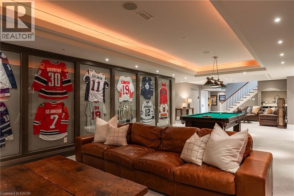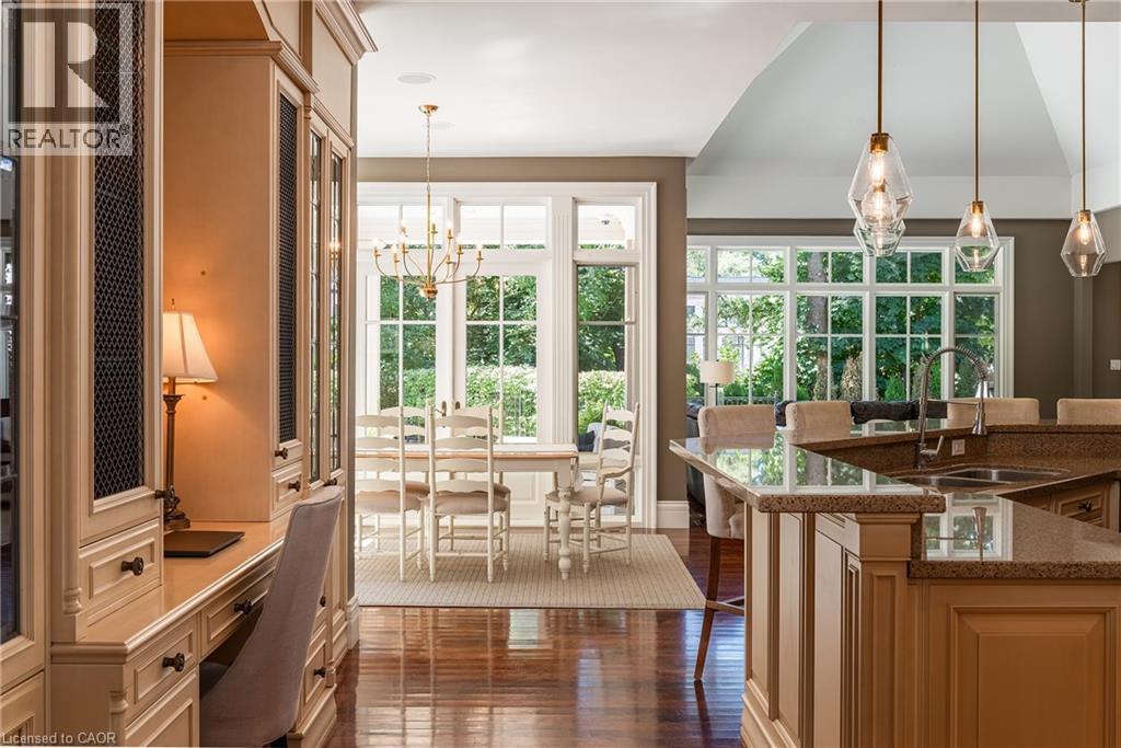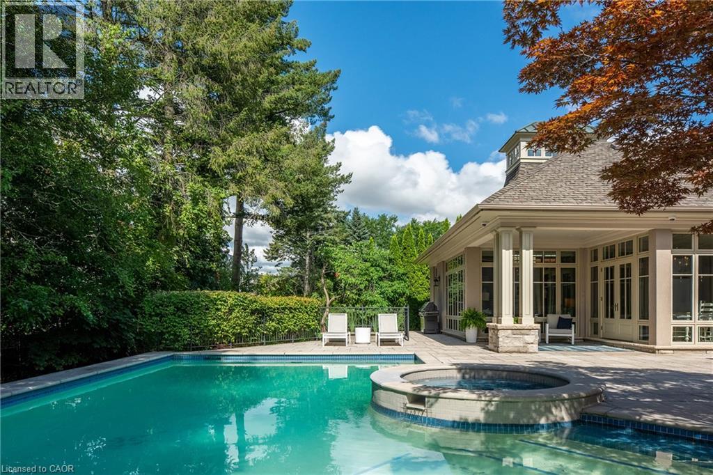 Exclusive lakeside community on a tree-lined private court in south Oakville, just steps from downtown. This sprawling 8,257 sq.ft. of total living space custom residence, set on a 17,500 sq.ft. pie-shaped lot and only one home from the lake, is like none other! Its timeless elevation is framed by extensive natural stone hardscaping (with heated drive and walkway) gunite pool and hot tub (equipment <5 years) and complete privacy, setting the tone for this spectacular home. Inside, you’ll immediately appreciate the sense of volume and refinement. An exceptional floor plan with natural flow, warm hardwood floors, expansive windows, generous principal rooms and soaring ceilings all combining to create an interior that feels both elegant and inviting. At the heart of the home is the kitchen/family room with an expansive Downsview kitchen with wrap-around island, designed for everyday life. A space for family with thoughtful details such as a built-in desk, separate drinks/prep kitchen, pantry, three-piece pool bath and a substantial mudroom. The main level also offers a private primary bedroom wing that opens to the garden and features 12-foot ceilings, a fitted walk-in closet, and an en-suite designed to impress. Upstairs, you'll find the kids retreat. Three bedrooms, each with its own sense of character and charm the perfect getaway that will appeal to the teen set as much as the younger ones. It is, however, the lower level that truly distinguishes this home. A new gym with sauna and full bath sets the stage, complemented by a theatre with Crestron system, custom seating and lighting. A billiards area, two bars, fireplace, two lounges, wine cellar and cantina. An expansive 3,465 sq.ft. of finished living space designed for leisure and entertaining. This remarkable property is further enhanced by a full security system, irrigation and smart-home technology. A one-of-a-kind opportunity in an ideal lakeside setting. (id:4555)