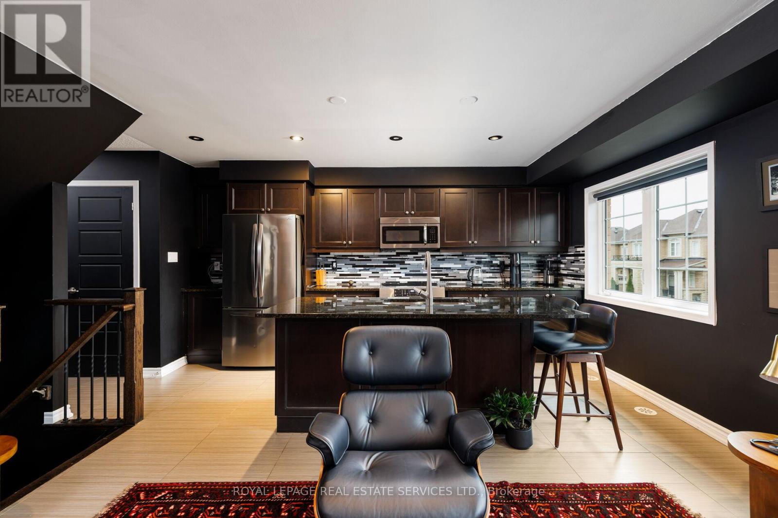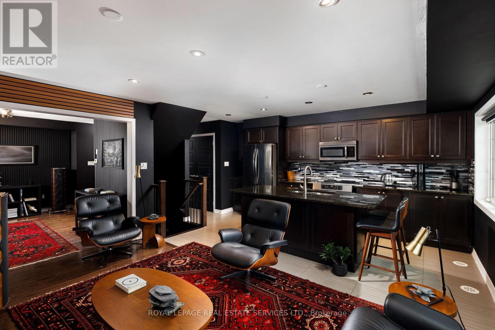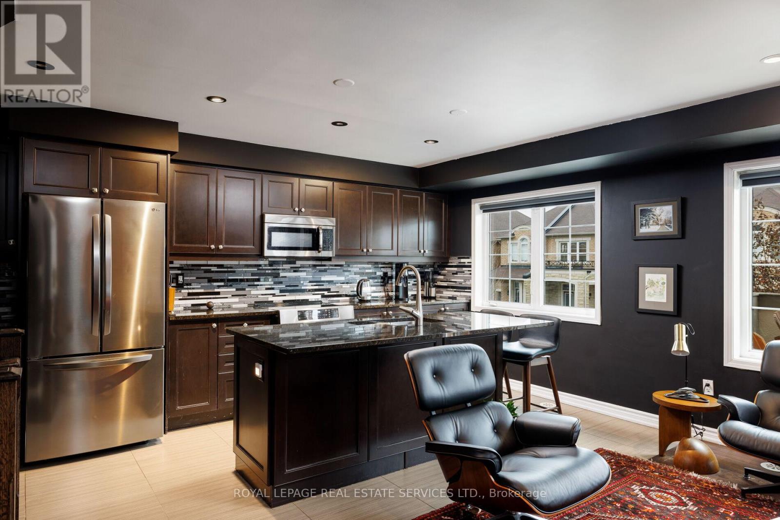Dramatic luxury awaits in Oakville's highly sought-after Preserve community. This immaculate Mattamy-built 3-bedroom, 2.5-bathroom end-unit townhome with approximately 1,541 sq. ft. delivers contemporary elegance with upscale finishes at every turn. A brilliant blend of materials creates distinctive flair and exceptional comfort-fresh designer paint colours highlight crisp white trims, wood-slat accent walls introduce warmth and texture, and beautiful hardwood floors, designer tile selections, and a solid oak staircase with iron pickets establish a refined foundation. The flexible main floor is bright and inviting, enhanced by pot lights, stylish light fixtures, large windows, and a walkout to the deck. The living room and dining room can be arranged interchangeably to suit your lifestyle. The upgraded kitchen stands out with dark shaker-style cabinetry, granite counters, an elongated mosaic tile backsplash, a functional island with a wraparound breakfast bar, pot lights, and quality stainless steel appliances. This level also includes a chic powder room and a convenient laundry room. Upstairs, three sunlit bedrooms and two full bathrooms provide comfort for the whole family. One bedroom boasts a dramatic cathedral ceiling, while the spacious primary suite offers a private 4-piece ensuite with dark cabinetry and a relaxing soaker tub/shower combination. The ground level features an inviting foyer with a double mirrored closet, stone-look tiles, and inside access to the attached single garage with epoxy flooring-adding both durability and style. Close to the Oakville Hospital, schools, Fortino's, restaurants, the Uptown Core, and highways for commuters. Credit check & references. Prefer No pets. & No smokers. (id:4555)