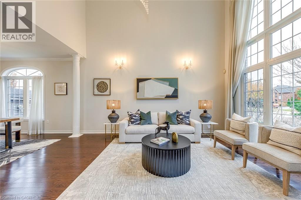 Welcome to this stunning executive residence with 3,181 sqft of above-ground living space (Plus Finished basement). This beautifully upgraded family home offers an impressive blend of elegance, comfort, and functionality in one of Oakville's most sought-after neighbourhoods. From the moment you step inside, soaring two-storey ceilings, expansive picture windows and bright, sun-filled living spaces create a grand yet welcoming atmosphere perfect for entertaining and everyday living. The main floor features multiple gathering areas including a formal living room with dramatic floor-to-ceiling windows, an inviting family room with a stone feature wall and gas fireplace, and a spacious dining area overlooking the backyard. The open-concept eat-in kitchen is designed for both style and convenience with stainless steel appliances, a centre island, stone backsplash, ample cabinetry and a walk-out to the private yard. Upstairs, the luxurious primary suite offers a serene retreat with a large bay window seating area, double closets and a beautifully appointed spa-like ensuite with dual vanities and a glass-enclosed shower. Additional bedrooms are generous in size with premium Harwood custom built-ins, large windows and warm hardwood floors. The fully finished basement extends the living space with an extra bedroom, open recreation room, built-in shelving, wet bar and ample room for a home theatre, games area, gym or playroom. This exceptional home is surrounded by parks, trails and green space, including Neyagawa Park and the picturesque Sixteen Mile Creek Trail. Families will appreciate access to top-rated schools such as Forest Trail, West Oak, Mother Teresa and Garth Webb Secondary, with private options like Appleby College just minutes away. Located close to shopping, restaurants, community centres, Glen Abbey Golf Club, transit and major highways, this home offers the perfect balance of convenience, lifestyle and luxury. (id:4555)