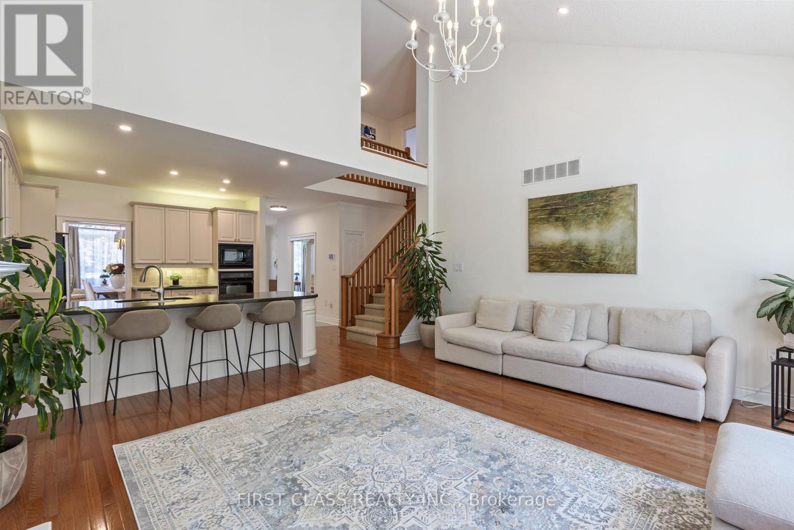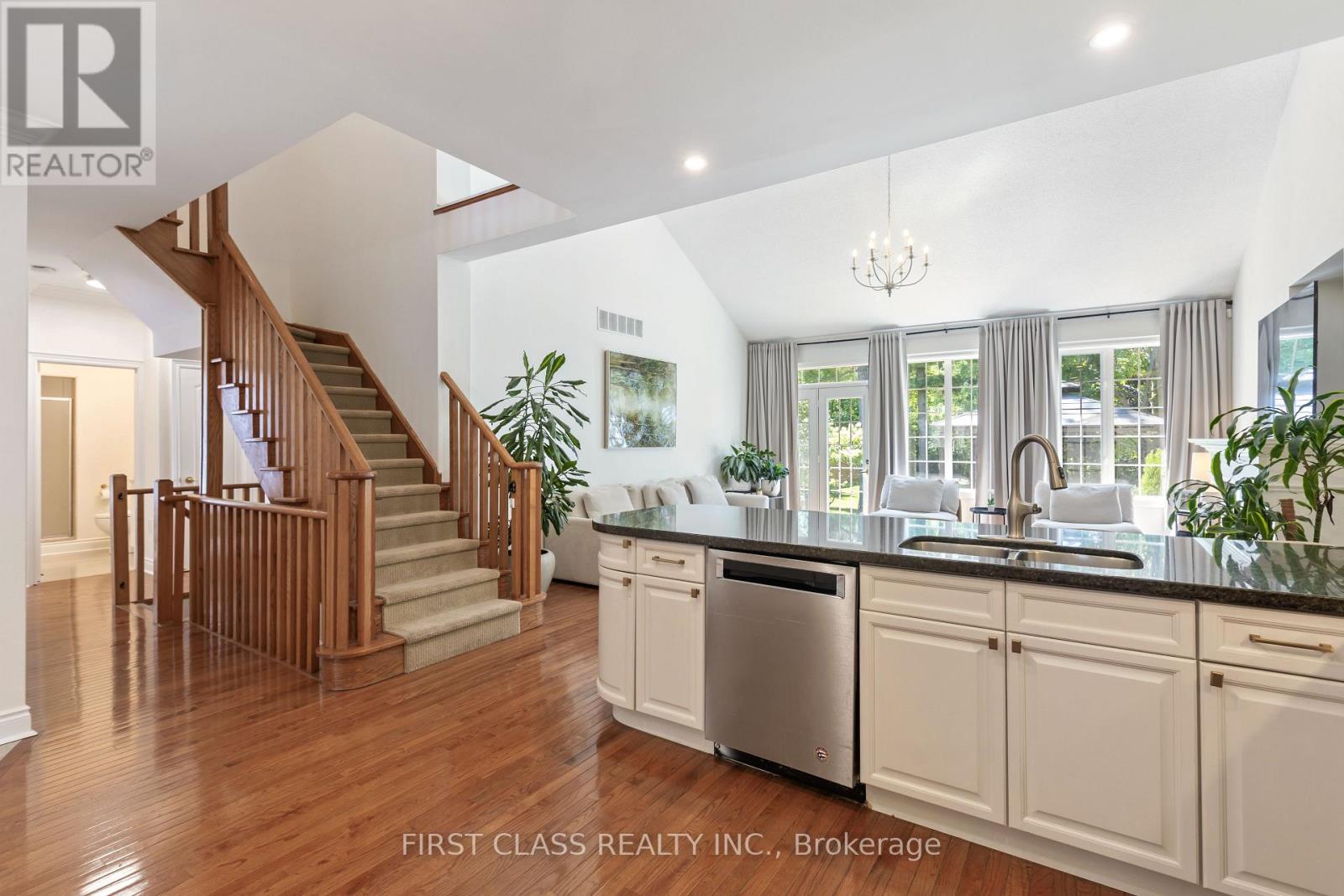 Sitting on a rare 242 deep ravine lot with a separate entrance, this spacious bungaloft offers two bedrooms on the main floor including a master suite. All washrooms have been fully renovated, and the entrance features elegant marble flooring. With over 4,600 sq. ft. of finished living space, the home includes a basement with a second kitchen perfect for rentals or multigenerational living. Inside youll find soaring ceilings, a gourmet kitchen, designer lighting, fresh paint, and a high-efficiency tankless heater. Outside, enjoy an oversized deck with gazebo, veggie garden, and breathtaking ravine views. Prestigiously located in Iroquois Ridge North near top schools, parks, trails, and shopping. (id:4555)