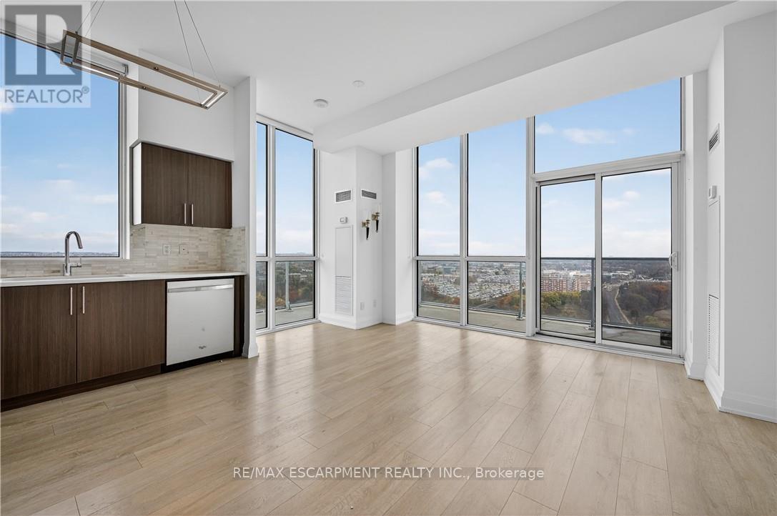 Bright & roomy 2 bedroom, 2 bath corner penthouse suite in sought after RAIN condo building featuring two side by side parking spaces & one locker, over 9 ft. ceilings, floor to ceiling windows, wrap around balcony with gorgeous panoramic views of Sixteen Mile Creek, Lake Ontario & Oakville to Toronto. This carpet free unit offers an open & airy kitchen & living room area, spacious primary bedroom with 3 piece ensuite bath & walk-in closet, good sized second bedroom, 4 piece main bath & convenient in-suite laundry. Living room, primary bedroom & second bedroom all contain sliding doors providing access to the balcony. Great location close to trendy Kerr Village, Downtown Oakville & all amenities. Just a short drive to Oakville GO station. Quick & easy access to QEW. Building amenities include concierge/security, gym, sauna, pool, party room, guest suites & more. Property being sold "as is, where is". (id:4555)