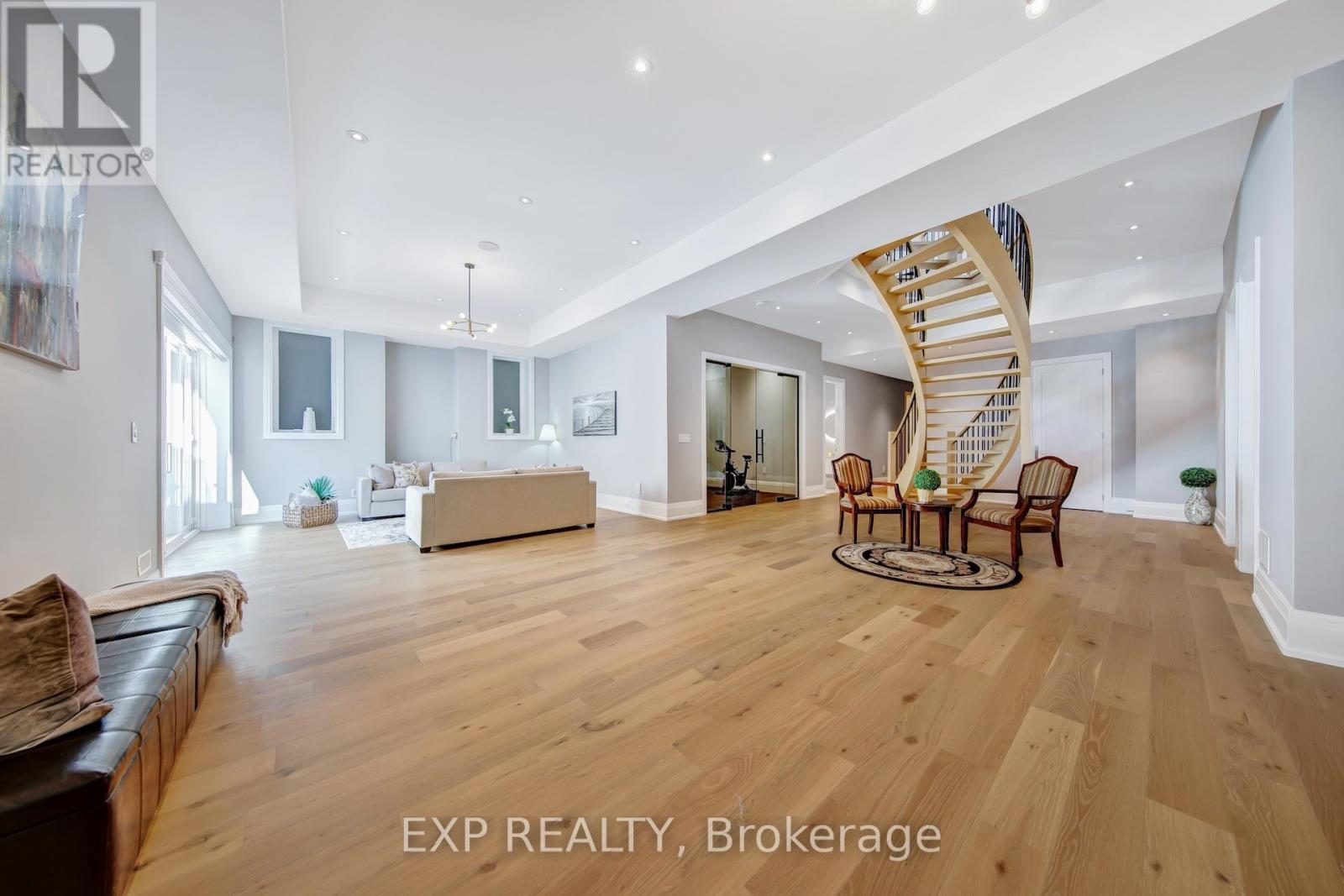 Welcome to 150 Wolfdale Avenue. Entertainers dream home, built by Ambassador Fine Custom Homes in 2023 fall, on a 0.36 acres in Southwest Oakville, south of Lakeshore Road. With 7276 square feet of living space on all three levels, this home perfectly combines sophisticated luxurious design with quality construction to create the ultimate package. The main floor is beautifully designed with exquisite detail radiant heated large porcelain tiles. The near 11-foot ceilings provide an open-airy feeling throughout. No estate home would be complete without a grand foyer and and this home has just that with 22 -foot ceilings, center of the house with 24-foot ceilings with large skylight allowing the entire house to be flooded with natural light while also highlighting the stunning hanging circular staircase beneath. Built-in wine cellar storage for over 180 bottles. The kitchen is a show piece with stunning 10-foot waterfall island, quartz slab backsplash and two-toned cabinetry and top-of-the-line Wolf ,Sub-Zero & Miele appliances. The kitchen/great room combination is designed for large scale entertaining with it being open concept to the dining room. A tucked away mud room, walk in closet with custom shelving & an elegant custom powder room are the perfect spaces to keep your family organized while providing inside access to both the garage and rear yard. Main floor you find your primary home office with front yard views. Elevator besides mud area travels all 3 floors for convenience of movement. The upper hallway stops you with a beautifully vaulted ceiling, skylights. Primary bedroom is located across the rear of the home taking in the best views of the backyard with ample natural light. The open concept walk-in closet with a skylight complements the primary ensuite, is a beautiful combination of rich tones to create the ultimate spa oasis. 3 additional bedrooms, Laundry & Library are found upstairs, each one uniquely decorated & appointed with closets and ensuites. (id:4555)