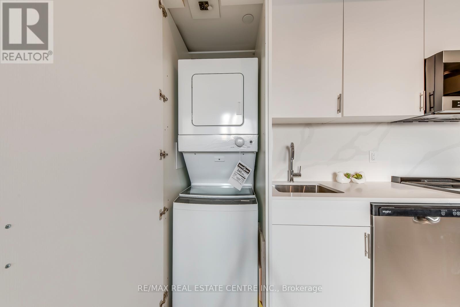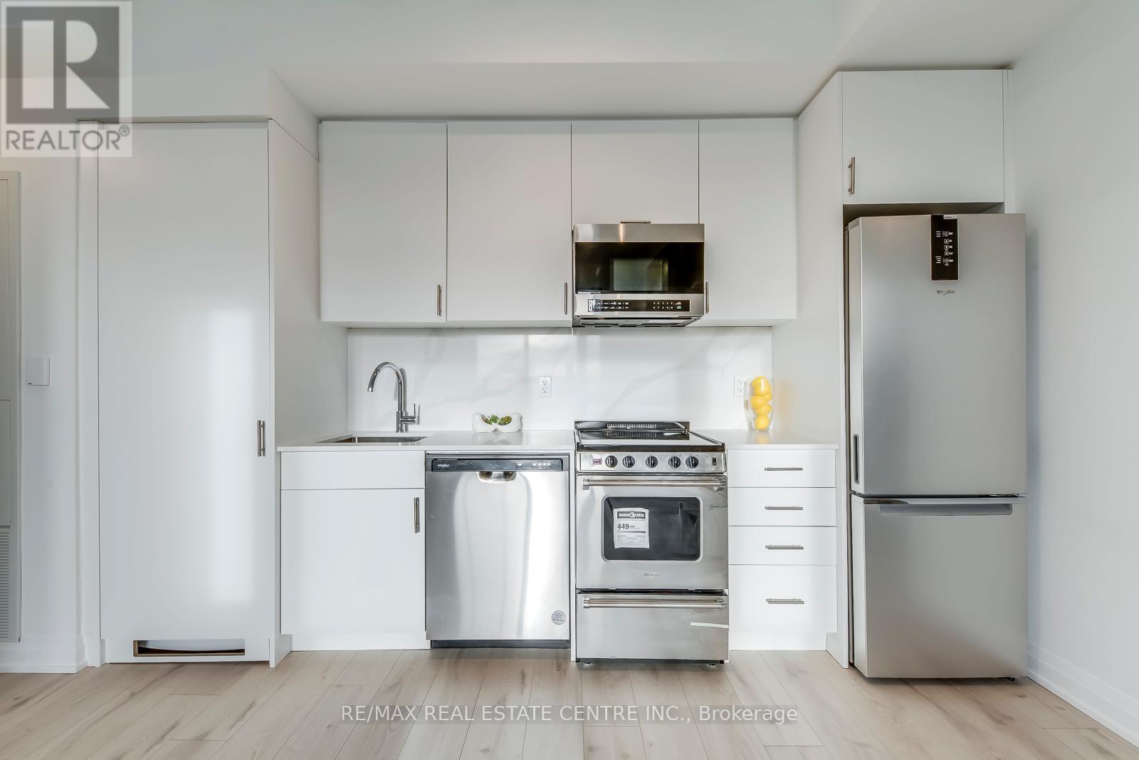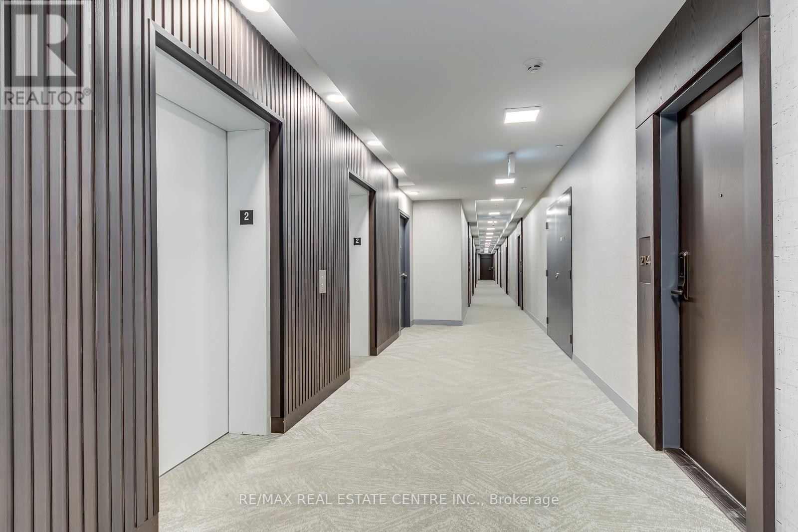 This brand-new, 825 sq ft, never-lived in 2 bedrooms + a very spacious, usable den and 2 washrooms unit features stylish and thoughtfully designed open concept layout with 9' ceiling, floor-to-ceiling windows and brand new blinds installed, premium laminate flooring and a contemporary kitchen which boasts quartz countertops, stainless steel appliances, sleek cabinetry, and a designer backsplash - perfect for everyday living and entertaining with A 55-sq ft balcony / terrace. Enjoy smart home conveniences including a keyless digital lock, in-suite wall pad, alarm system and monitoring, smart thermostat and leak detection system. High-speed internet (Bell Fiber 1.5 Gbps) is included, along with one underground parking space and a locker.Residents enjoy the first-class amenities such as 24-hour concierge, designer lobby with lounge, rooftop terrace with BBQs, fully-equipped fitness centre and yoga studio, game room, private dining area, party/dining room, co-working spaces, a pet spa/grooming room and visitor parking.Ideally located near Highways 403, 407, and the QEW, with easy access to Oakville GO Station, top-rated schools, Sheridan College, shopping plazas, Oakville Trafalgar Hospital and beautiful parks. Live in one of Oakville's most sought-after communities in a stylish boutique condo. (id:4555)