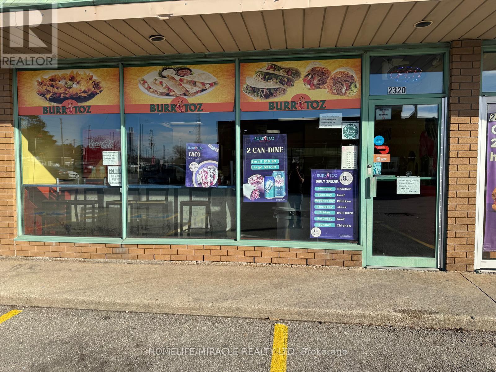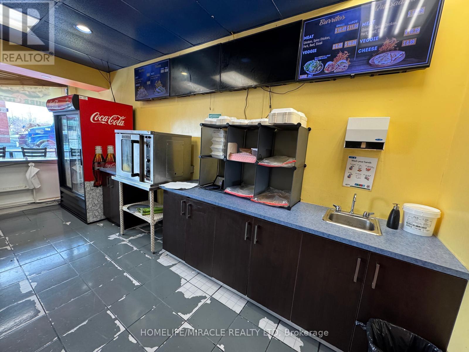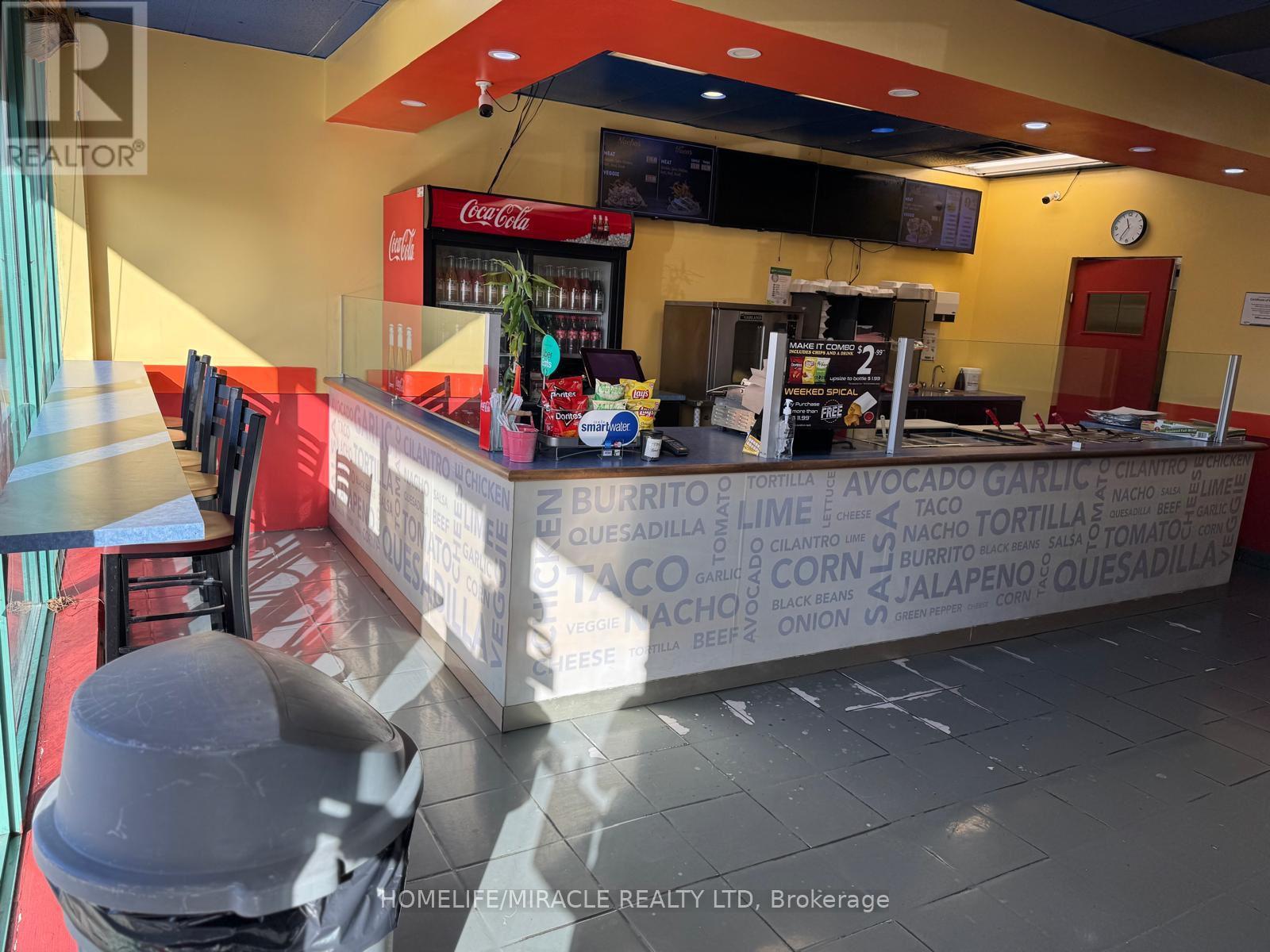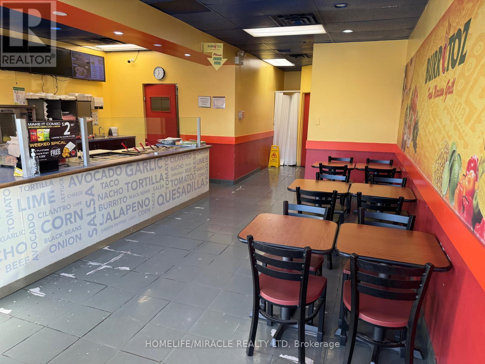 Turnkey Opportunity to Own Burritoz Fresh Mexican Grill, Be your Own Boss, no franchise Fee, Ideal for First time Buyer, Monthly Lease $ 3,352 Including TMI and HST, Big Refrigerator bought within 02 years, All other appliance in good working condition Excellent location on high Traffic area of Tim Hortons, Wendy's, Subway and Ford Assembly Plant, 17 People seating Facility, Ready for Immediate Possession, Don't miss this chance to step into a profitable business, No Hood, Buyer can installed as requisite (id:4555)