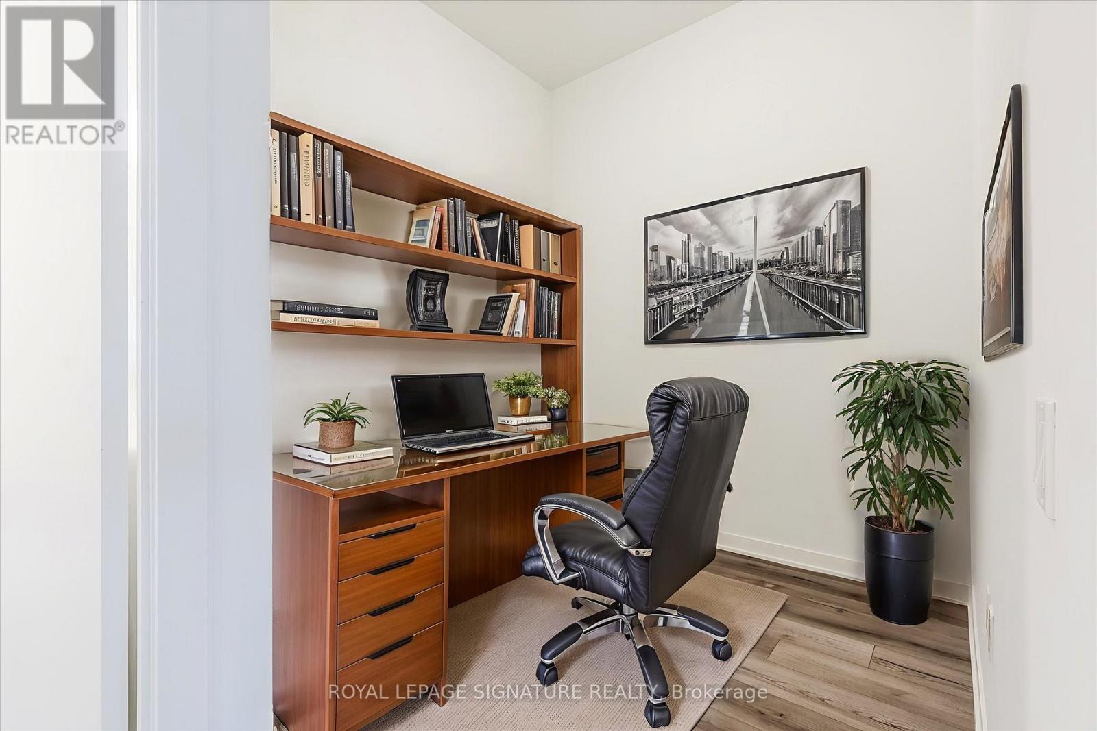 Rare ground-floor suite offering true indoor/outdoor living. Soaring 12 ft ceilings, 680 sq.ft. of interior space plus a private 220 sq.ft. patio with water, hydro & gas hook-ups and direct walk-out access to parking-no elevators needed.Open, airy layout with oversized windows, 1 bedroom + versatile den, 4-pc ensuite with tub/shower and a separate 2-pc bath. Stainless steel appliances, stacked washer/dryer & custom window coverings included. Ground-level patio expands your living area-ideal for BBQs, gardening, pets or outdoor dining.Includes: 1 parking (P1 #79), locker (Level 1 #489), 3 fobs, garage remote & mailbox keys.Amenities: 24-hour concierge, gym, party room with billiards, outdoor BBQ areas. Bell fibre Wi-Fi included. Utilities metered via Metergy. Steps to GO Transit, QEW/407, parks, shops & conveniences. A condo that lives like a townhome. (id:4555)