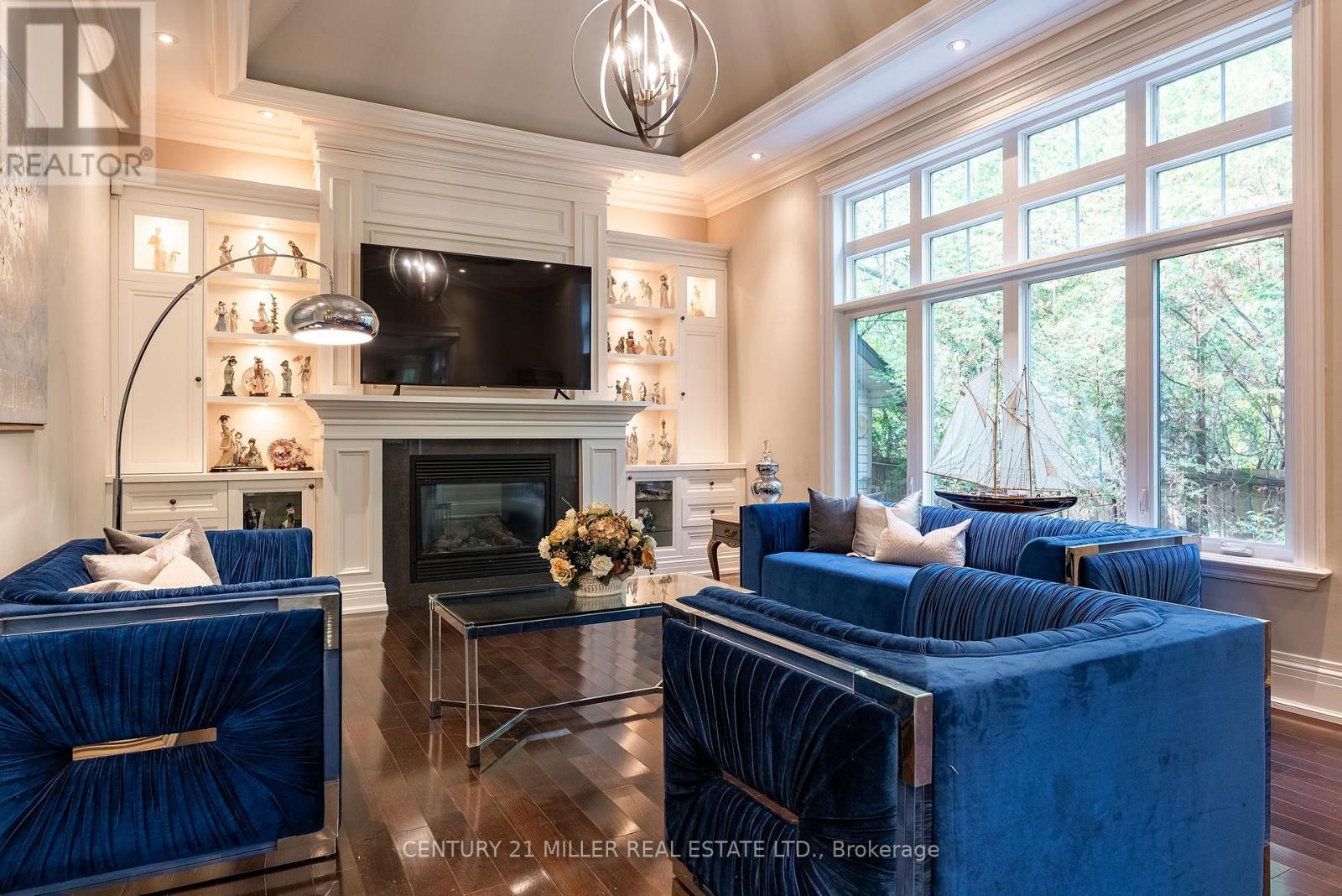Distinguished custom-built two-storey residence offers over 5,600 square feet of refined living space, including approximately 3,700 square feet above grade and nearly 2,000 square feet in a luxuriously finished lower level nestled within a prestigious Bronte East enclave. Step through the double entry doors into an impressive two-storey foyer crowned by soaring 20-foot ceilings and an open gallery overlook. Expansive transom windows bathe the space in natural light, highlighting the floating hardwood staircase with wrought-iron railings. Main level unfolds with an open-concept layout featuring hardwood floors, vaulted and recessed ceilings, French doors, custom millwork, and oversized picture windows that fill each room with light. Family room serves as a true architectural centerpiece with its 14-foot vaulted ceiling and floor-to-ceiling fireplace, while six additional rooms offer the flexibility to tailor each space to your lifestyle. Chef's kitchen blends form and function with custom cabinetry, premium built-in appliances, and an expansive centre island ideal for both cooking and entertaining. The upper level hosts four spacious bedrooms, including a primary suite overlooking the rear and side gardens. This retreat features a spa-inspired five-piece ensuite complete with a floor-to-ceiling glass shower and whirlpool-style jetted tub. Two of the secondary bedrooms boast graceful, vaulted ceilings, adding a sense of airiness and architectural character. Mature trees and lush greenery envelop the property, creating serene views from every window. Professionally finished lower level extends the home's luxurious living space, offering a recreation room, theatre room or fifth bedroom, home office, above-grade windows, and a three-piece bath. Outside, the manicured backyard oasis features a gazebo and flower garden, providing a tranquil setting for relaxation or entertaining. A true beauty that you can not miss. Main level laundry room, plus upper level laundry room. (id:4555)