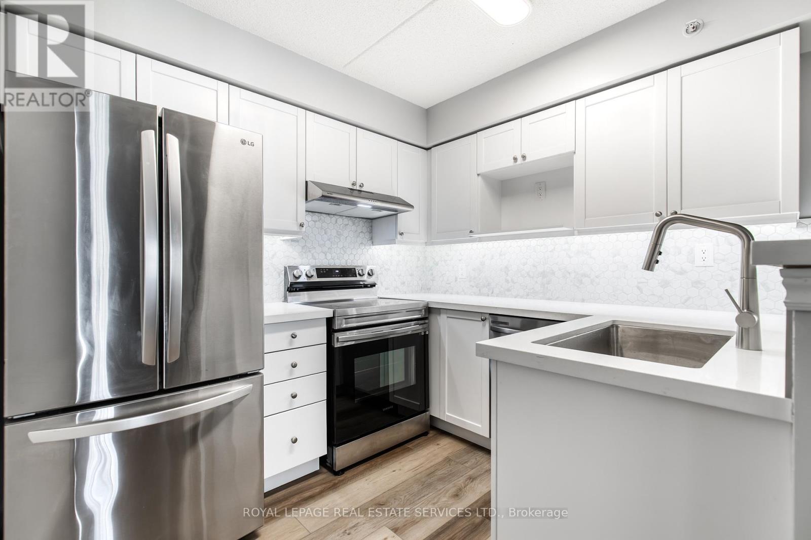 Located in Oakvilles prestigious Glen Abbey neighbourhood, this beautifully updated 1 Bedroom + Den, 1 Bathroom condo offers an open-concept layout with new flooring (2025) and a living/dining area with walk-out to balcony. The kitchen features stainless steel appliances, as well as updated: countertops, backsplash, new lighting including under-mount, sink, faucet and dishwasher (2025). The 4-piece Bathroom offers updated vanity and lighting. The Bedroom includes built-in closet organizers and the versatile Den is perfect for home office or second bedroom. Additional features include convenient in-suite laundry, linen closet and private locker storage accessible from the balcony. Amenities include: fitness centre, party room and visitor parking. Close to parks, shopping, top schools, Oakville Hospital, highways and GO, this condo is a perfect choice for first-time buyers, down-sizers, or investors seeking a stylish, low-maintenance home in one of Oakvilles most desirable communities. (id:4555)