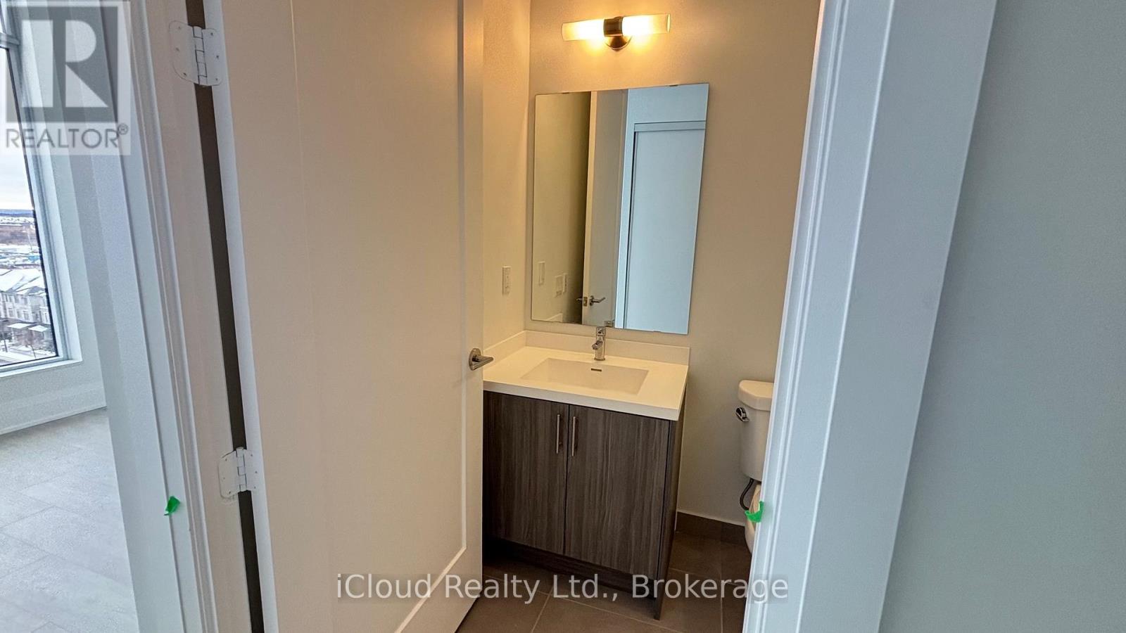 Welcome to the newest modern condominium!Be the first to live in this stylish, brand-new Penthouse:an 825 sq.ft,2-bed+den unit w/10' ceilings open concept layout. Premium laminate flooring&floor-to-ceiling windows flood the space w/natural light,framing unobstructed southwest views.Elegant 8' interior doors w/3"casing add a touch of sophistication.Modern kitchen w/custom cabinetry,quartz countertops,&backsplash.Brand-new stainless steel Energy Star refrigerator,dishwasher,range&vented microwave hood-fan.The sun-filled primary bedroom boasts a spa-like en-suite,&a large closet.The spacious second bedroom features unobstructed views&a generous closet, perfect for comfort&storage.The main washroom impresses w/custom vanity cabinets, a pressure-balanced bathtub/shower, privacy lock,&a water-efficient low-flow toilet.Convenient in-suite laundry w/a white Energy Star stacked unit,featuring a washer&front-loading dryer, tucked away in a closet.The extra den offers a versatile space for a home office or media room.Control your smart home effortlessly w/in-suite wall pad-manage temperature,security cameras,&visitor access.Includes 1 underground parking ,1 storage locker,&high-speed Bell Fiber Internet.The Post is a modern condo,a sought-after neighborhood known for its boutique shops&retail amenities.Located near Hwys 407&403 for GTA commutes.A 24-hour concierge welcomes guests,monitors building access,accepts parcels.Social Hub, located in the lobby's upper level,is a sophisticated space designed by world-class architects&interior designers.It offers a comfortable setting for socializing or conducting business.Modern w/fully equipped fitness&yoga facilities,entertainment lounges,&co-working spaces.Host unforgettable gatherings in elegant Party Room,featuring private dining,lounge areas,&prep space.Unwind in the Games Room for relaxed afternoons or post-dinner fun.Elevate your experience on Rooftop Terrace:al fresco dining w/BBQ stations,fireside lounging,&panoramic views. (id:4555)