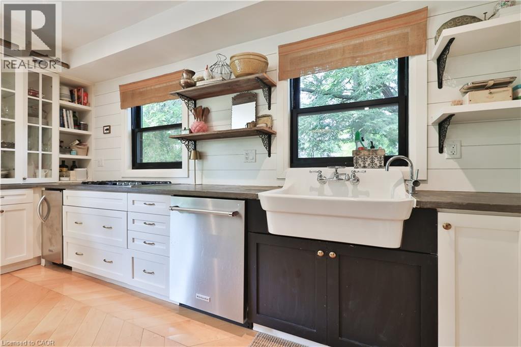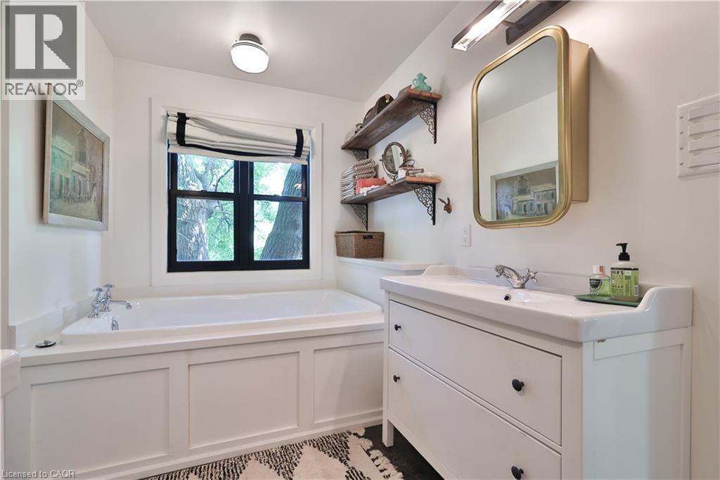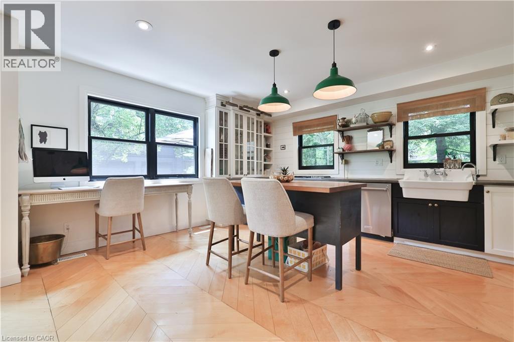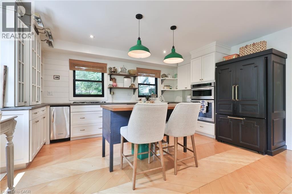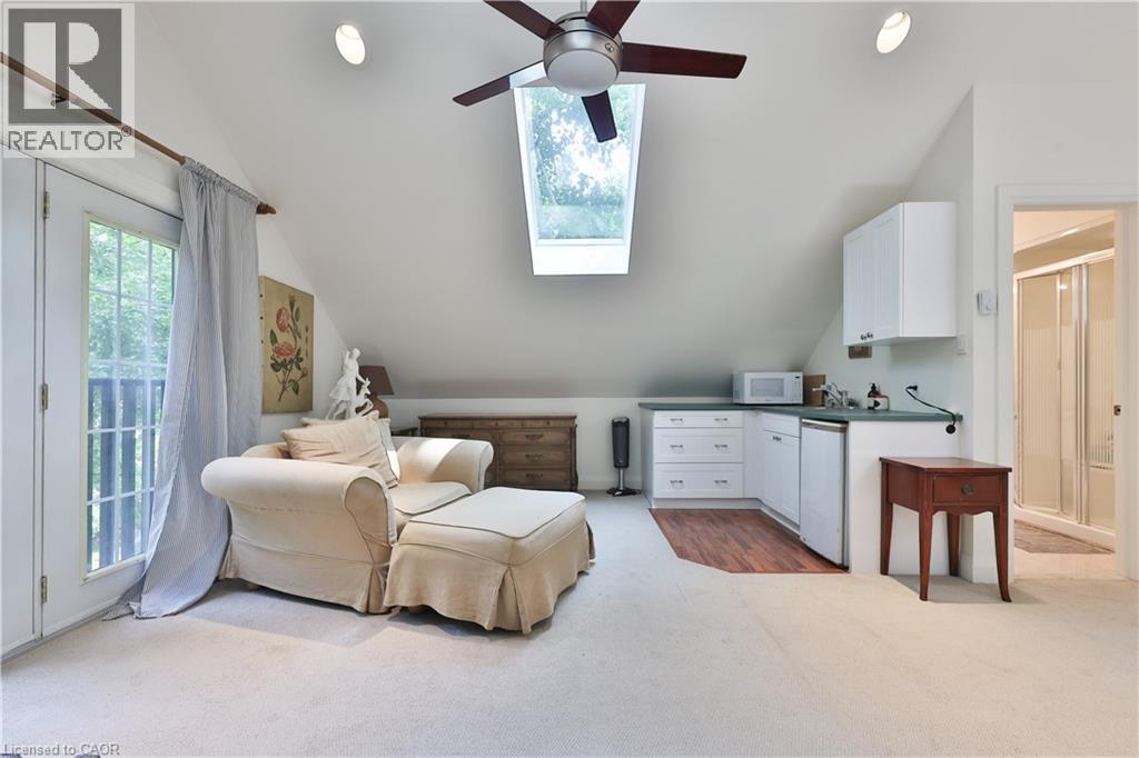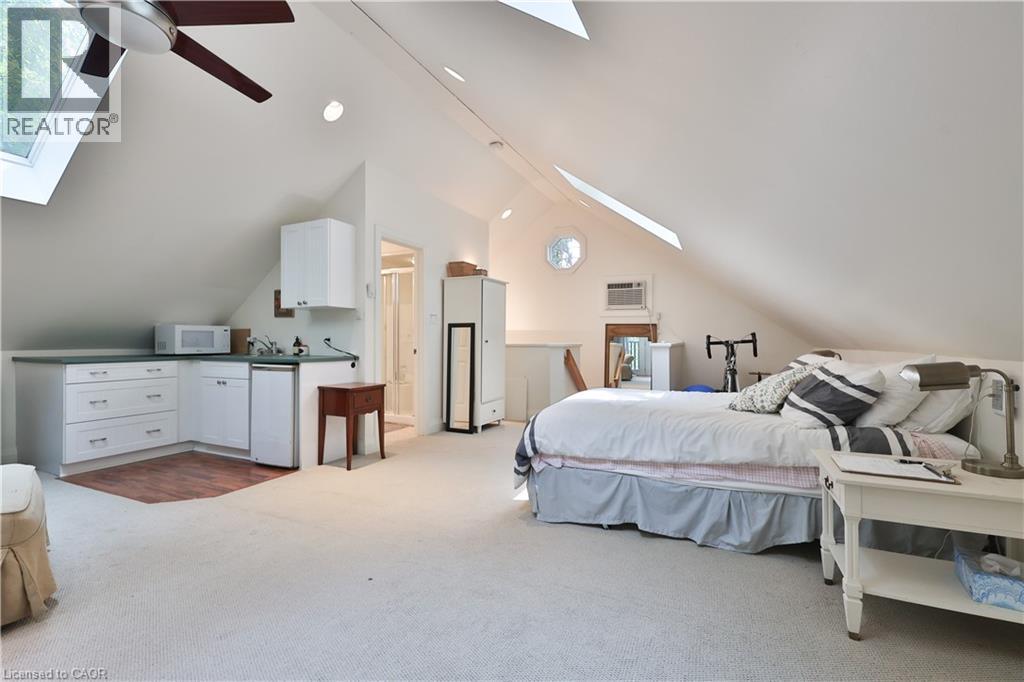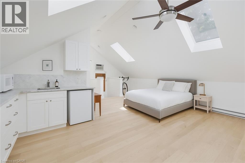 Chic Farmhouse Elegance Steps from the Lake Nestled in one of Oakville’s most beloved enclaves, 52 Kerr Street is a timeless blend of farmhouse charm and refined design. This four-bedroom home sits on a lush 60 × 160 ft lot surrounded by mature trees, just steps from the lake with peak views of the lake from one of the bedrooms, and walking distance to downtown’s fine restaurants, cafes, boutique shopping, marina, parks, and prestigious schools like Appleby College. Inside, every detail reflects craftsmanship and character. White shiplap walls, curated lighting, vintage-inspired fixtures, and layered textures create a warm, elevated feel. Principal rooms are bright and inviting, custom millwork, and stylish touches throughout. The finished attic level offers rare versatility—framed by vaulted ceilings and natural light, it’s perfect for a playroom, studio, teen retreat, or nanny suite, already roughed-in for skylights. The detached, 600 sq ft finished coach house above the garage features a separate entrance, kitchenette, and full bath—ideal for guests, a home gym, office, or income suite. Outdoors, enjoy golden-hour sunsets from the west-facing primary balcony or entertain in the sunlit, private backyard framed by mature foliage. It is a property that lives with soul, and one that will resonate deeply with those who value heritage character, designer finishes, and timeless appeal.. (id:4555)