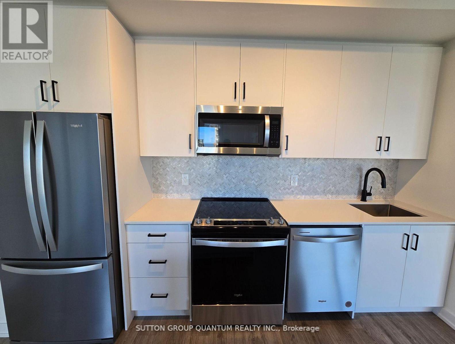 Welcome to the brand new, fully upgraded Oak Village Condo by Minto! This stunning unit features one bedroom + den that can easily serve as a second bedroom. Enjoy the elegance of 9-foot ceilings and high-class premium finishes throughout. The kitchen is a chefs dream, featuring quartz counters, backsplash, kitchen Island, perfect for Entertaining. The modern cabinetry with black hardware accents and stainless-steel appliances adds a touch of luxury. The main washroom is equally impressive with sleek cabinetry, premium countertops and upgraded Tiles. Relax in the master bedroom, complete with a walk-in closet & custom closet organizer, Carpet free living with vinyl flooring throughout, enhancing the contemporary feel. Den includes windows that livens thespace. Additional perks include one underground parking spot, ample visitor parking for your guests, state of the art building amenities and features. The building itself is sleek and modern, offering top-notch amenities. Located in a prime area, close to Schools, parks, trails, Sheridan college, shopping centers, Walmart, restaurants, and transit options, including easy access to the 403, 407, and QEW, and mere minutes to Oakville Go. Experience the best in modern living at Oak Village Condo schedule your viewing today (id:4555)