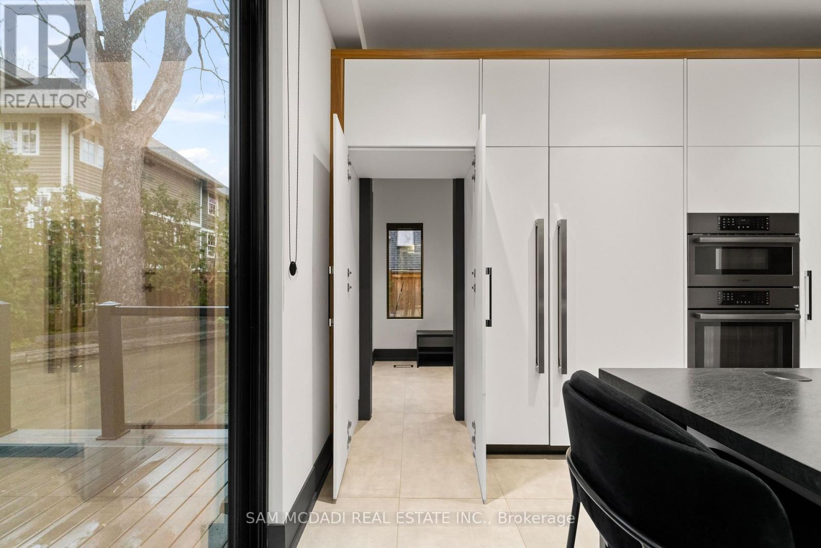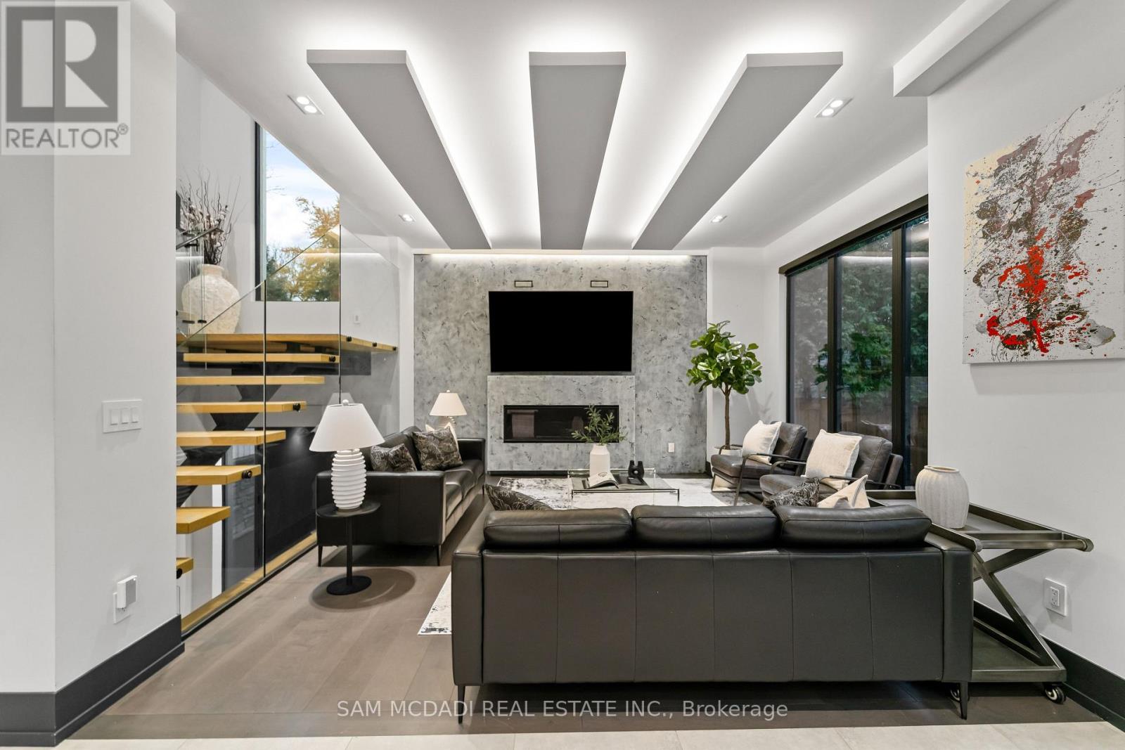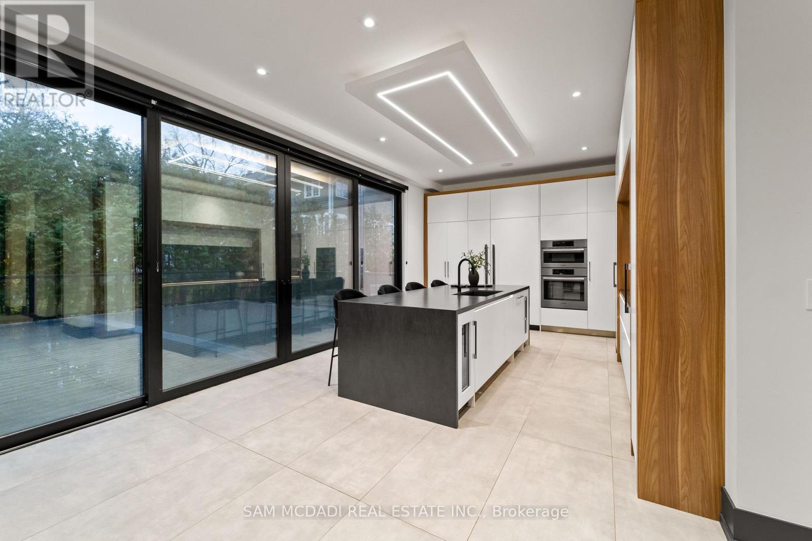 Welcome to 417 Union Street, an exceptional modern home nestled in the heart of prestigious Old Oakville. Completed in 2023, this one-of-a-kind residence blends modern farmhouse inspiration with refined contemporary and traditional design elements, creating a home that is both striking and timeless. The modern farmhouse exterior showcases clean lines, black-framed windows, and a harmonious mix of materials, complemented by a covered porch, professionally landscaped front and back yards, and a stone six-car driveway. The backyard offers a private retreat with a deck, stone patio, and custom garden shed. Inside, the home is filled with natural light and defined by a modern, sleek interior. Wide-plank engineered hardwood flooring, custom ceilings with integrated LED lighting, and large-format matte tiles elevate the main living areas. The chef-inspired kitchen features quartz countertops and backsplash, an oversized centre island, built-in Bosch appliances, and a convenient adjoining servery. A tiered maple staircase with glass railings leads to the upper level, where skylights continue the home's bright and airy feel. The expansive primary suite spans over 700 square feet and offers two walk-in closets and a luxurious five-piece ensuite with double vanity, freestanding tub, and glass-enclosed rainfall shower. Three additional bedrooms each include their own custom three-piece ensuite with modern walk-in showers. The fully finished lower level adds outstanding versatility with a second kitchen, large recreation room, two additional bedrooms with ensuites, and a powder room. Additional highlights include an elevator servicing all three levels, 10-ft ceilings on the main and lower levels, pot lights, blackout blinds, built-in speakers, and a security system. Ideally located minutes from Lake Ontario, parks, trails, Oakville GO, the QEW, and top-ranked schools including Appleby College, this home delivers modern luxury, thoughtful design, and an exceptional lifestyle. (id:4555)