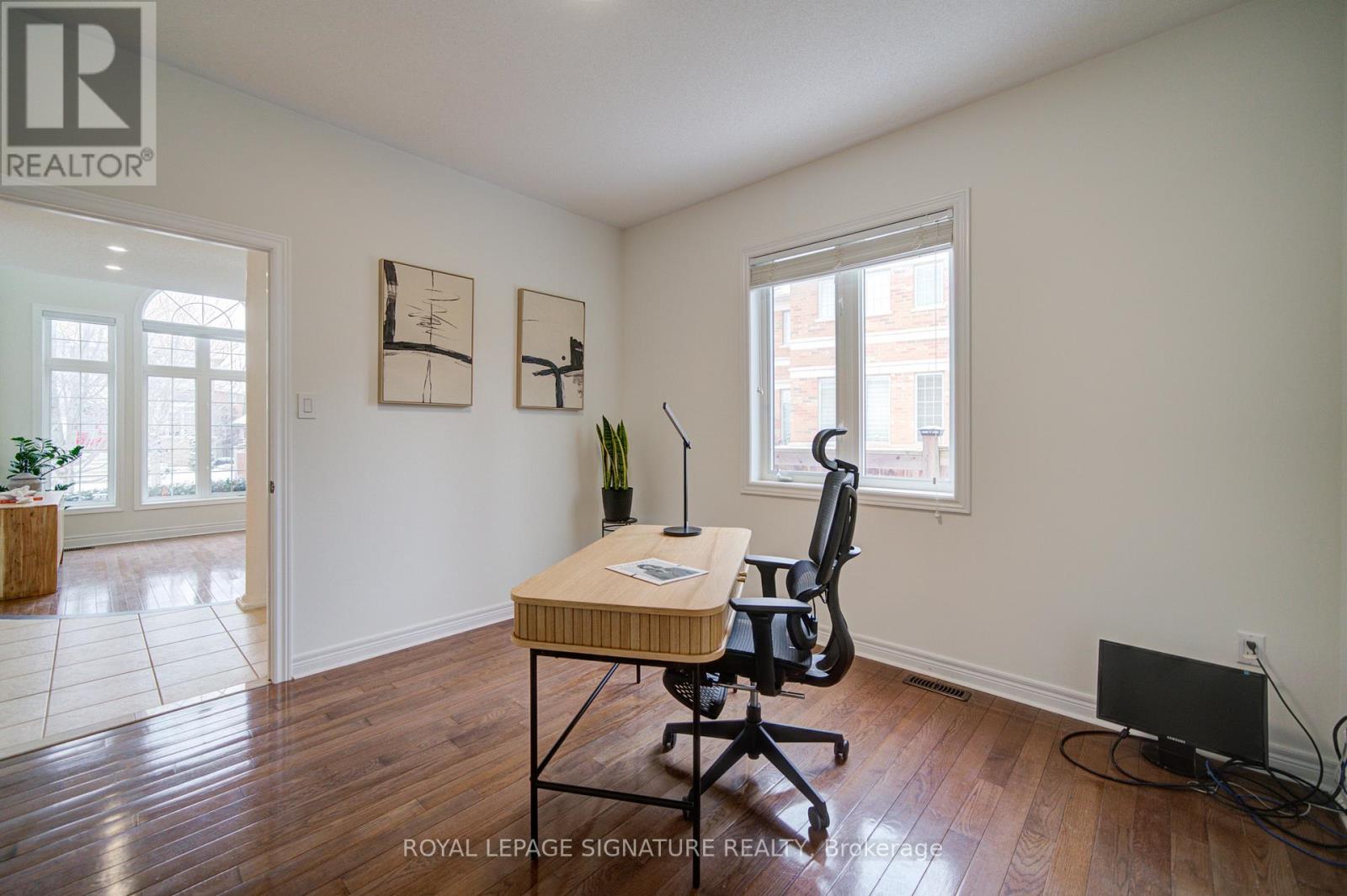 Welcome to Oakville's prestigious Joshua Creek community, where convenience, luxury, and top-rated schools come together. This stunning Ballantry-built home sits on a premium deep lot with approximately 60' width across the rear, offering exceptional privacy and a professionally landscaped backyard with cobblestone-style patio, towering 28' Blue Spruce trees, maple, ornamental pear trees, and large cedars. Approximately 3,540 sq. ft. of luxurious living space features an upgraded fiberglass front entry door, hardwood flooring throughout the home, 9' main floor ceilings, crown mouldings, and a curved oak staircase. The main floor features a private office, a sunken formal living room with tapered columns, and pot lights, and an elegant dining room with coffered ceiling and hardwood floors. The extensively upgraded and modified kitchen boasts maple cabinetry, extended-height upper cabinets, granite countertops, travertine backsplash, stainless steel appliances, a breakfast bar, and a walk-out to the breakfast area. The open-concept family room, anchored by a gas fireplace, completes this level, providing a perfect space for family gatherings and entertaining. The second floor features a spacious primary suite with a spa-inspired ensuite, including a luxurious soaker tub and a large walk-in closet. Three additional bedrooms include one with a private ensuite, providing comfort and convenience for family or guests. An exceptional home offering outstanding location, privacy and quality craftsmanship. (id:4555)
