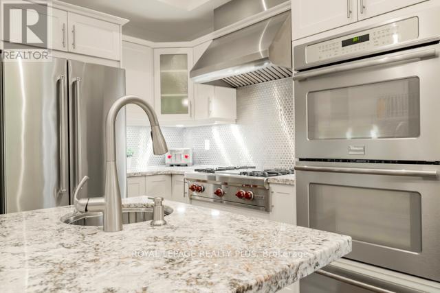 Location, Location, Location! Welcome To the Luxurious And Convenient Living In This 3-Storey Freehold Townhome Situated Perfectly In The Heart Of Central Oakville. Welcome to Village West a boutique enclave of upscale freehold townhomes set in Oakville's downtown core. Just steps to downtown Oakvilles shops, dining and the lakefront parks that make this location so desirable. This 3-storey freehold townhome offers urban living at its finest with 9' ceilings and Hardwood flooring runs throughout the home.. Gourmet Kit. W Granite Counters, S/S Appliances, Wine Frg, Dbl Oven, Wolf Cook-Top, S/S & Apron Sink & stainless steel Backsplash, second sink, Pantry and a spacious granite island with seating. The Kitchen Is Open To The Bright And Airy Great Room with a gas fireplace. Walk-Out To Large Private Sun Soaked patio Perfectly For Relaxing Or Entertaining. The Principal Ensuite Has A Glass Shower, Double Vanity And Large Soaker Tub. The master floor has a den which can be converted to a third bedroom. Third floor has the second bedroom, open concept family room, laundry and additional storage room . Extra large two car garage for lots of storage.ROUGH IN ELEVATOR. Just steps to downtown Oakville's shops, dining, theatre, the lakefront parks and the lake that make this location so desirable. Close to Appleby College, St. Thomas Aquinas Catholic secondary school ,community centre, outdoor pool, pickle ball, Go station and major highways. Great walk score. This is a great home for professionals or soon to be / early retirees who want an easy lifestyle and an upgraded home with minimal maintenance. Common elements fees paid yearly with maintenance of Common Area, landscaping and Snow Removal, visitors parking. (id:4555)