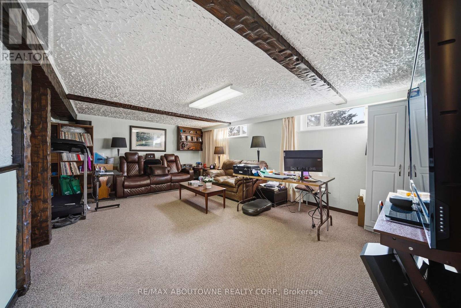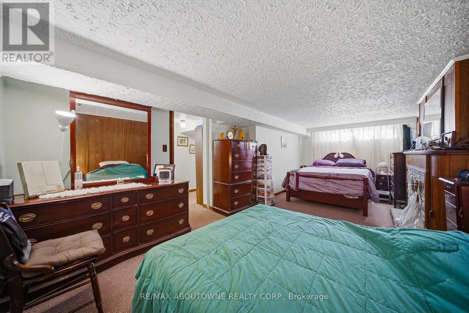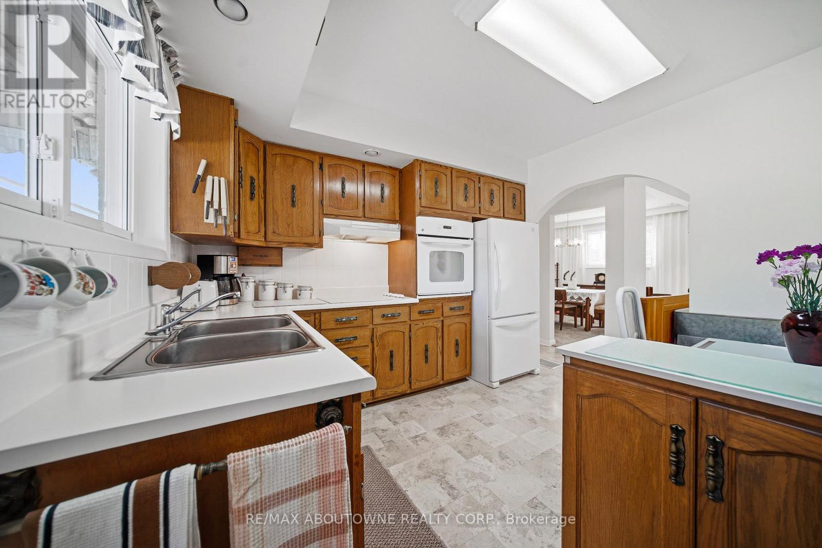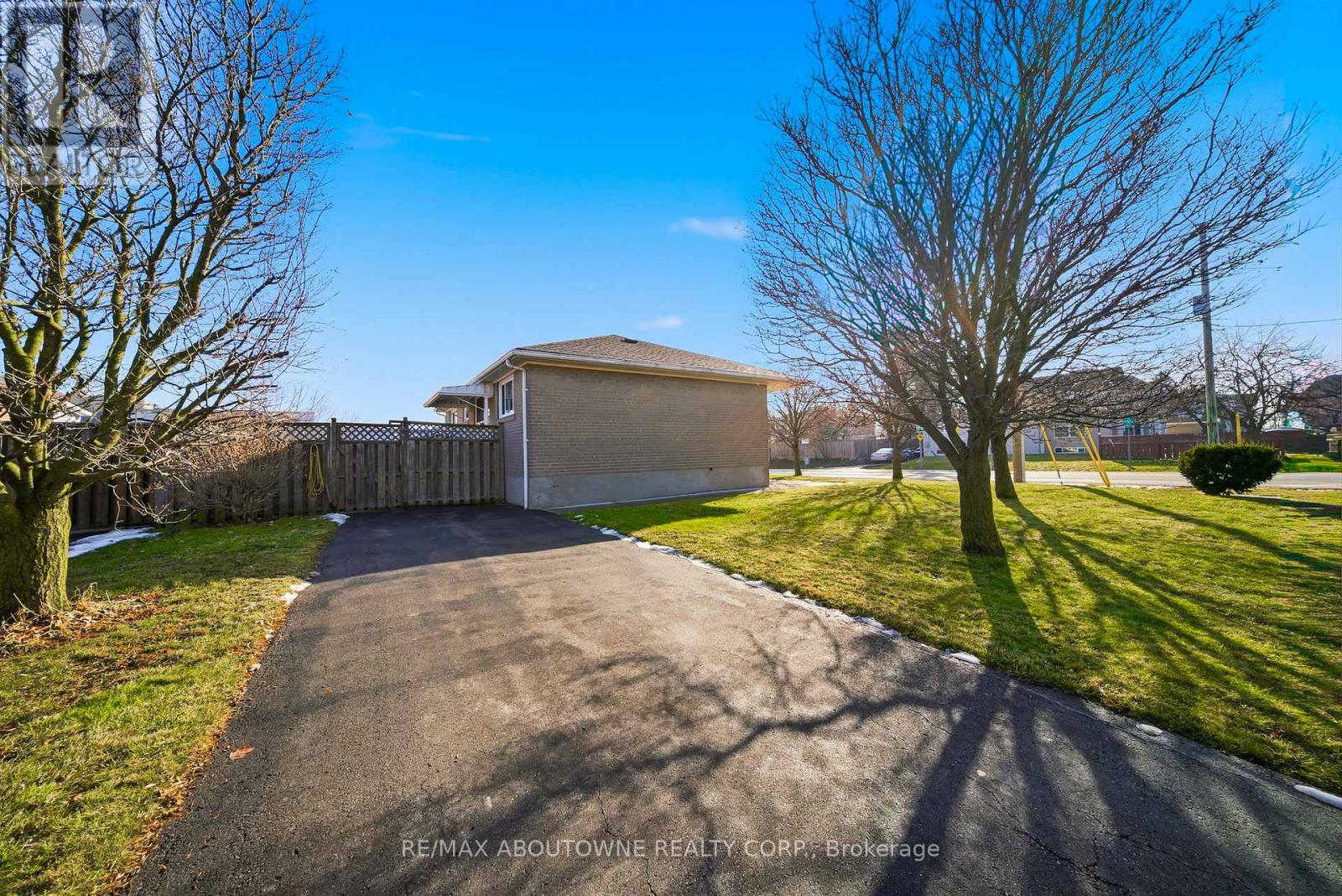 Fantastic detached bungalow set on an impressive 8,525 sq. ft. pie-shaped corner deep lot (as per Geo) in a highly sought-after West Oakville neighbourhood. A rare opportunity to own a charming starter home on a premium lot surrounded by multi-million-dollar custom residences-ideal for downsizers, end users, or builders. The home is bright, spacious, and ready to be enjoyed, offering 3+1 bedrooms and 2 bathrooms. The inviting living room features large windows that fill the space with natural light. The eat-in kitchen includes a cozy kitchen nook, ample cabinetry, and appliances-perfect for casual meals and everyday living. One bedroom is currently used as a dining room and can easily be converted back to a bedroom if desired. Two additional generously sized bedrooms and a full bathroom complete the main level. The finished basement offers a recreation room, an additional bedroom, a 3-piece bathroom, plus storage and utility rooms. Enjoy a fully fenced backyard, two driveways with parking for up to 7 cars, and a 1.5-car garage. Conveniently located with public transit on Bridge Road and easy access to Third Line and the QEW. Just minutes to Bronte GO Station and Downtown Oakville. (id:4555)