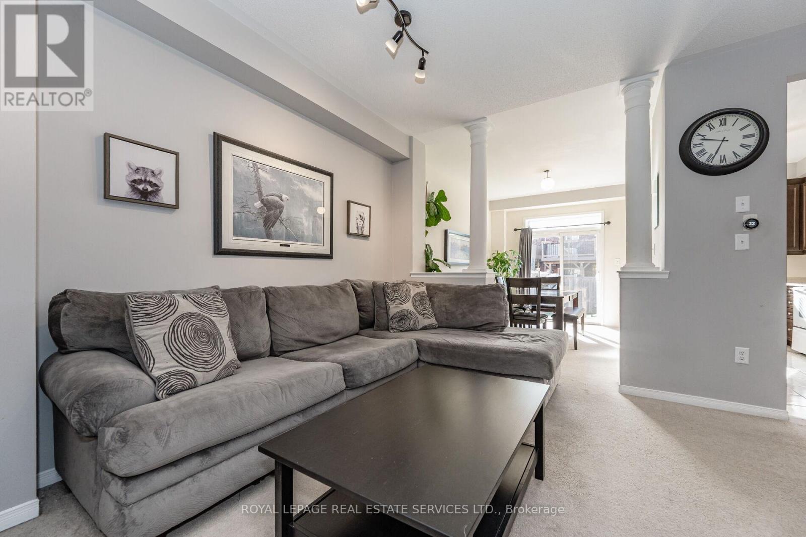 Fantastic townhouse with 3 bedrooms plus loft situated in the highly sought-after Westmount neighborhood. It's chic brick exterior and welcoming front porch set the stage as you enter the spacious foyer. Inside, the main floor impresses with its open-concept layout, perfect for family gatherings and entertaining. The kitchen is equipped with ample cabinetry, a pantry, and a central peninsula, perfect for culinary endeavors. Adjacent is a sunlit dining room with a sliding glass door that leads to the fenced backyard, ideal for outdoor enjoyment. The generous living room centers around a cozy gas fireplace. For added convenience, there's a powder room and garage access on this level. Ascend the upgraded staircase to the second floor, where a spacious primary bedroom retreat awaits, hosting a walk-in closet and a private 4-piece ensuite bathroom. Two additional well-appointed bedrooms with large closets provide ample accommodation. A versatile loft area, 4-piece bathroom, and a linen closet complete this level. Ideally located within walking distance to parks, a convenience plaza, and excellent schools, this home offers easy access to major highways, shopping and amenities, the GO Station, transit, and the new Oakville hospital. Smoking and pets are not permitted. (id:4555)