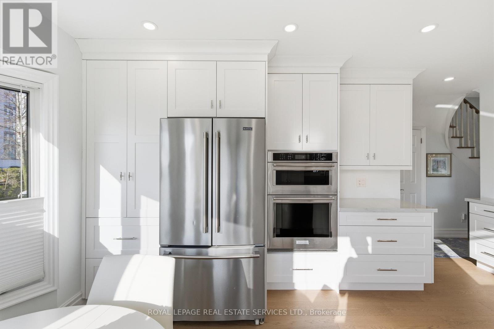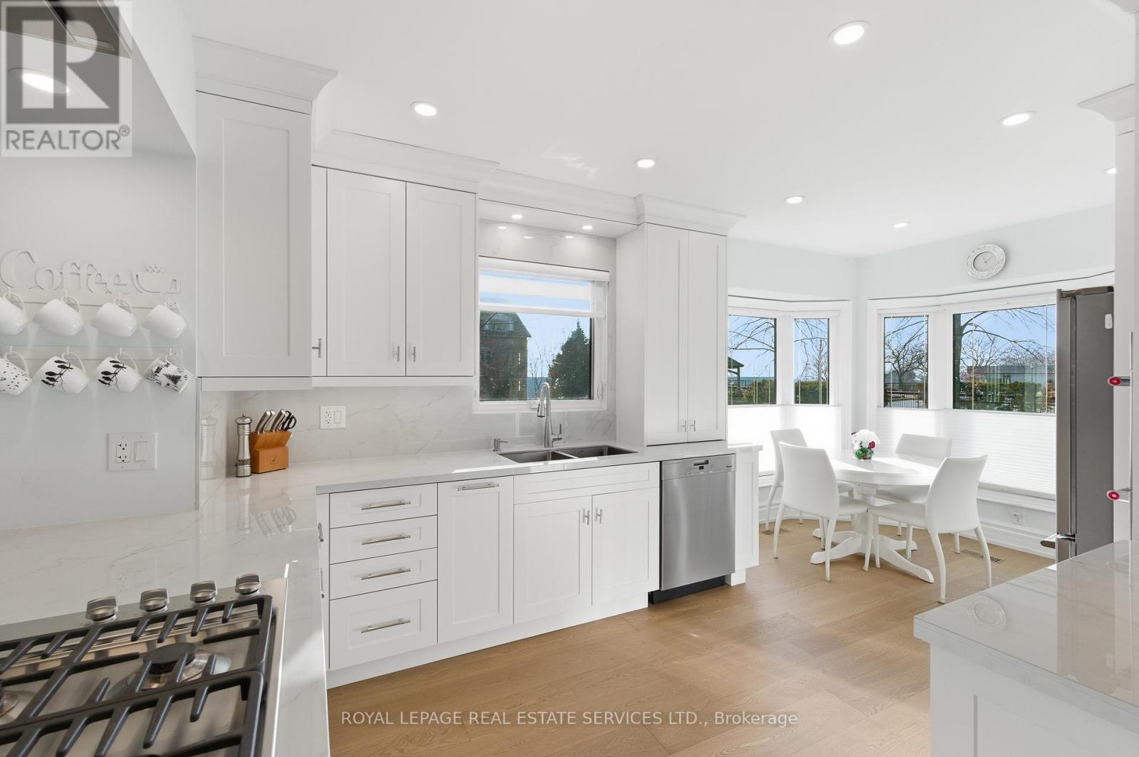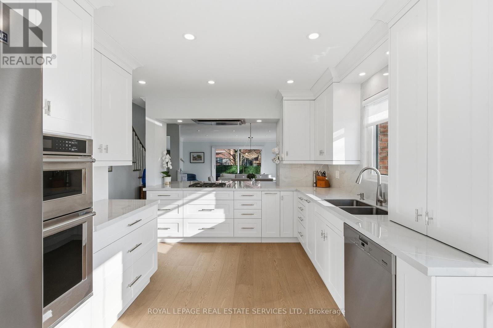 Location, location! Welcome to 27 Southaven Place, an exceptional executive luxury home nestled in a quiet enclave just steps from the shores of Lake Ontario. Enjoy tranquil lake views from every window & embrace refined lakeside living. This fabulous, updated open concept home boasts approx 3,000 sq. ft. of thoughtfully designed living space, flooded with natural light. Features include expansive windows, white oak hardwood floors, pot lights, crown moulding, custom window shades, high-quality light fixtures, a refinished staircase throughout all 4 levels & much more! The chef's inspired kitchen with breakfast area is a showstopper, complete with high-end stainless-steel appliances, ample cabinetry & pull-out drawers, double pantry, porcelain countertops & backsplash & a custom peninsula with double-sided storage. The formal dining room seamlessly connects to the spacious living room, which features a custom oversized patio door leading to a substantial outdoor deck. A chic powder room completes this level. The 2nd level offers two bedrooms, a stylish 5-piece bathroom & family room with a gas fireplace. The 3rd level hosts the primary retreat, featuring a private balcony, walk-in closet & a spa-inspired 5-piece ensuite with double vanity, stand-alone soaker tub, large walk-in shower & vanity station. The lower level includes an office, storage space & inside access to the double car garage. Impressive interlock walkway with granite steps & wrought-iron handrail, beautifully landscaped grounds with irrigation system & parking for 3 vehicles on the driveway. Homeowners' association - $180 monthly fee provides grass cutting, driveway snow removal & semi-annual window cleaning. Ideally located in sought-after Bronte Village, just steps to the lakefront & a short stroll to the marina, trails, shops, cafés, restaurants & amenities. An unparalleled opportunity to enjoy an amazing lakeside lifestyle VIEW THE 3D IGUIDE HOME TOUR FOR MORE PHOTOS, FLOOR PLAN, VIDEO & BROCHUR (id:4555)