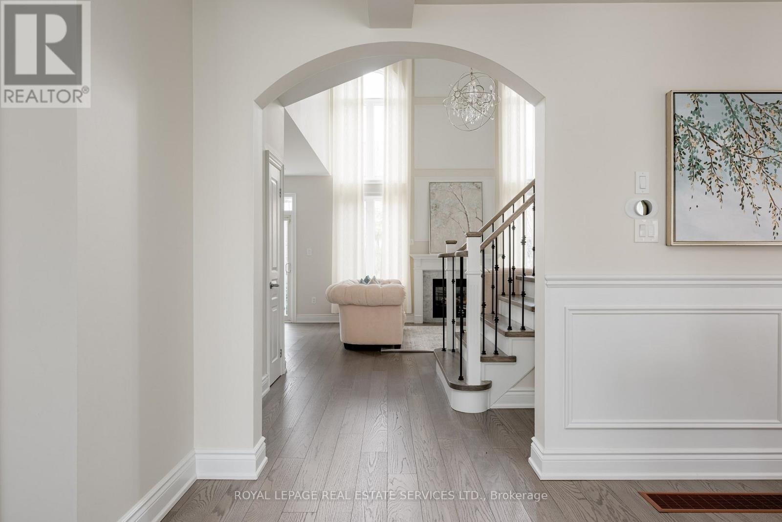 Welcome to 3310 Timeless Drive in Oakville's highly sought-after Lakeshore Woods. This extensively upgraded, move-in-ready home offers over 3,500 sq.ft. of finished living space and is set on a private, tree-lined lot with manicured landscaping and excellent curb appeal. A desirable south-east exposure fills the home with natural light throughout the day, enhancing the bright, functional layout. Step inside through the fiberglass front entry door to find oak flooring throughout the main and second levels, elegant millwork, and a neutral designer palette. The impressive two-storey family room features a gas fireplace, oversized windows, custom blinds, and an open staircase with iron pickets-an immediate visual highlight. The gourmet, Instagram-ready white kitchen showcases granite countertops, classic subway tile backsplash, generous cabinetry and prep space, and premium appliances including a Café refrigerator, built-in double wall oven, KitchenAid microwave, Bosch dishwasher and range, plus a wine cellar, with a walk-out to a low-maintenance, well-treed backyard complete with hot tub-ideal for entertaining. The upper level offers a spacious primary retreat with walk-in closet and spa-inspired ensuite with soaker tub. Main-floor laundry with interior access to the double garage adds everyday convenience. The professionally finished basement extends the living space with a large recreation room, home office (or optional 5th bedroom), additional office nook, cold room, and ample storage. Ideally located with quick access to QEW and GO Train, minutes to Bronte Village, harbour, shops, restaurants, and a short stroll to lakefront trails, beaches, parks, tennis courts, and splash pad-this is a polished home offering space, light, and an exceptional lakeside lifestyle on a quiet street. (id:4555)