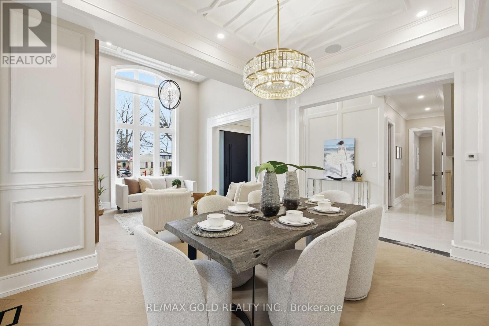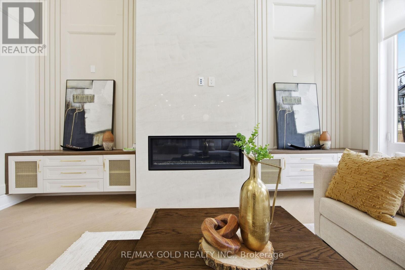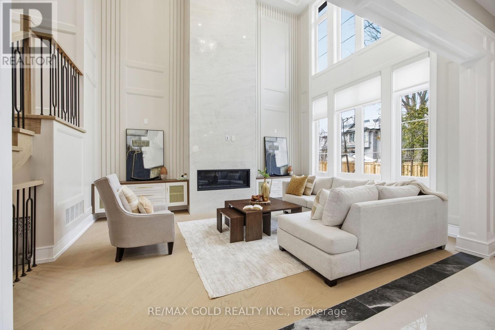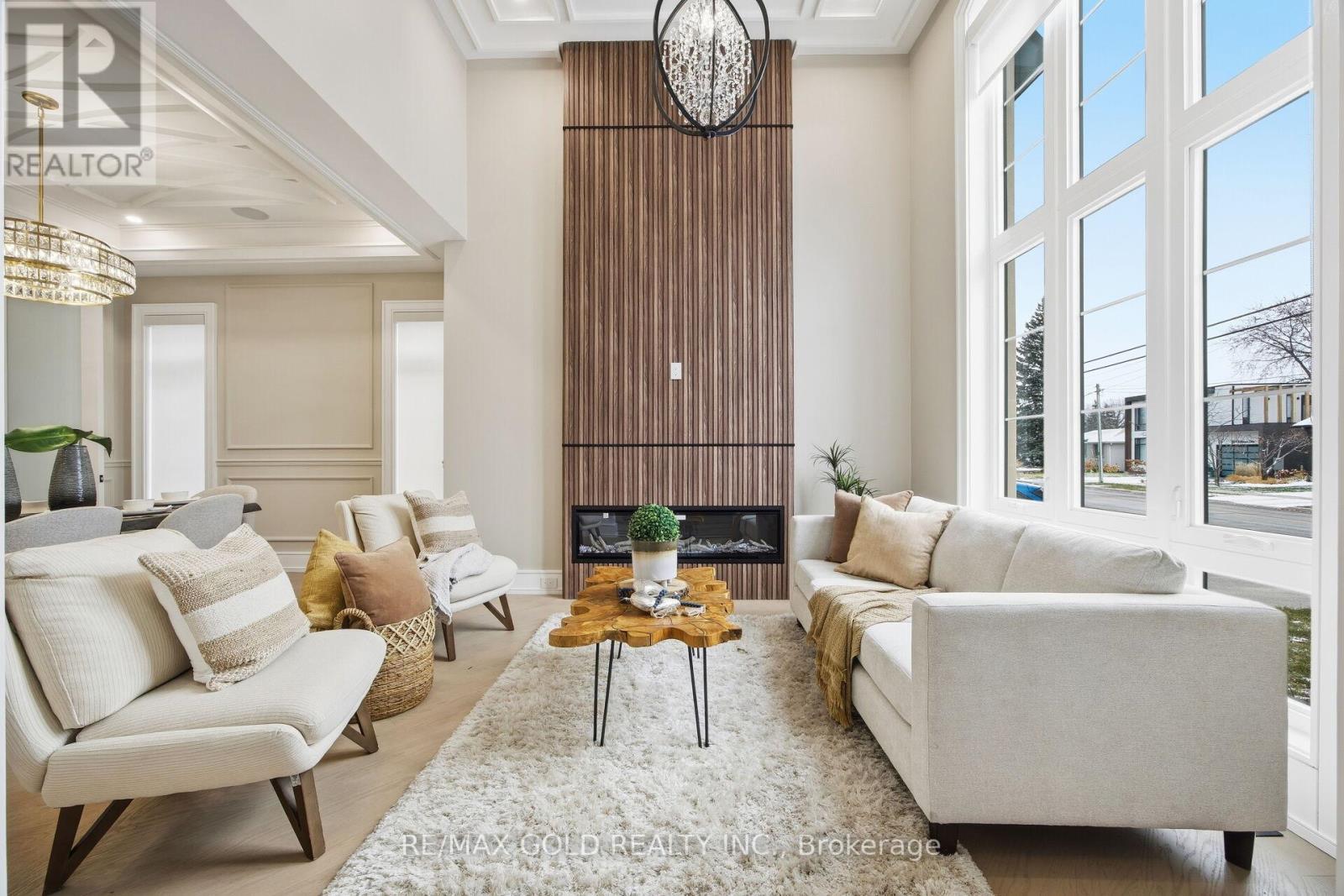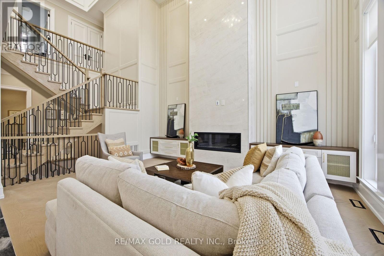 Welcome to an exceptional custom-built luxury residence, where inspired architecture, thoughtful design, and superior craftsmanship come together to create a home that is both elegant and functional. The grand foyer sets the tone, offering an impressive welcome into this truly distinguished home. Light & architectural impact, the interior features a dramatic skylight that fills the home with natural light. The show-stopping 20' family room is highlighted by a stunning floor-to-ceiling porcelain fireplace, sophisticated yet inviting atmosphere. The formal living room features 14' ceilings and expansive front-facing windows. The open-concept main level is enhanced by 10' ceilings, modern pot lighting, and floor-to-ceiling windows, allowing sunlight to pour into every corner. Elegant wainscoting and custom wall panelling throughout the foyer, living room, family room, and staircase showcase the exceptional detail and craftsmanship found throughout the home. At the heart is a chef-inspired kitchen, designed for both everyday living. It features panel-ready Miele appliances, including refrigerators & other appliances, offering a seamless, built-in aesthetic. This well-planned kitchen provides an outstanding layout, premium finishes, and a functional flow that opens to the backyard through sliding doors. Step outside to a covered rear patio, accessed from the kitchen, creating the perfect space for outdoor enjoyment. The fenced backyard ensures privacy, while the beautifully designed interlocked driveway and wrap-around hardscaping enhance curb appeal and durability. Car enthusiasts and active families will appreciate the extra-wide garage, designed to comfortably accommodate larger vehicles. A secondary rear garage door allows convenient access to the backyard-ideal for motorcycles or pets. The fully finished basement continues the luxurious living experience, with large window wells for enhanced natural light, a stylish wet bar & full bath. Extra-wide garage Doors. (id:4555)