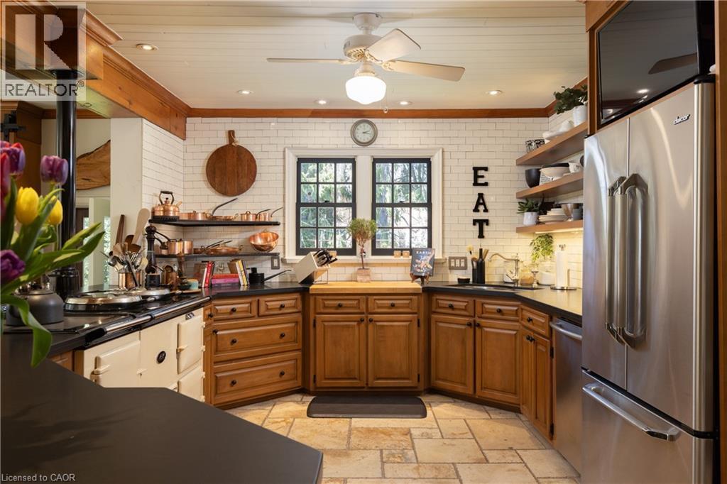 Nestled at the end of a private laneway on .996 acre in sought-after South East Oakville,tranquility awaits. This Arts and Crafts-style home, boasting a wrap-around veranda,sits amidst nearly an acre of meticulously manicured gardens. Step inside this charming 4-bdrm residence,offering over 3600 sq ft of living space, and be enveloped in its timeless character.The sun-drenched kitchen is a chefs dream, featuring an AGA stove,step down to the breakfast area with multiple walkouts to the gardens, seamlessly blending indoor and outdoor living.The great room is the perfect place to relax in front of the fire at any time of the day.Entertain with ease in the expansive living and dining room, while a tucked-away main floor office provides privacy. Upstairs, the large principal bedroom overlooks the backyard and gardens, boasting a built-in vanity area, bookcase, custom walk-in closet, and a luxurious 3-piece ensuite. Two additional generously sized bedrooms share a timeless 4-pc bath, while the fourth bedroom, currently used as a gym and laundry area, offers flexibility to suit your needs. Outside, is a dining gazebo and stone patio area, complete with a wood fireplace, that set the stage for al fresco entertaining amidst the natural beauty of majestic evergreens and perennials. A vegetable garden provides a farm-to-table experience, while a potting shed stands ready to house all your gardening tools. An oversized detached double car garage offers ample storage, with an unfinished coach house space above, roughed in for plumbing and electrical, awaiting your vision to become a work at home office, gym, guest suite, or in-law quarters. Experience the rare tranquility this home brings on an estate-sized lot. Live in/renovate/build, the possibilities are endless. Ideally located steps from the lake, parks, and a short distance to all Downtown Oakville has to offer, including great public and private schools. LUXURY CERTIFIED (id:4555)