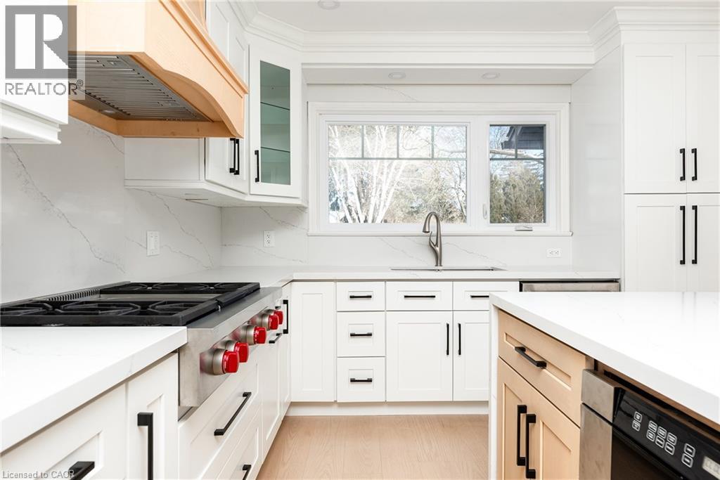 Exquisitely renovated from top to bottom, this exceptional 4+1 bedroom family residence is set in the magnificent enclave of Morrison, one of Southeast Oakville’s most prestigious enclaves on a rare 103 x 150 ft premium lot just steps from Lake Ontario, Gairloch Gardens, and minutes to downtown Oakville. Walking distance to top-ranked schools including E.J. James Public School, St. Vincent Elementary, and Oakville Trafalgar High School. The thoughtfully redesigned main level showcases an elegant open-concept living, dining, and kitchen space, ideal for both refined entertaining and everyday family living, complemented by a private main-floor office. The chef’s kitchen is a true showpiece, featuring custom cabinetry, a dramatic quartz waterfall centre island, and top-of-the-line built-in appliances, seamlessly blending form and function. The dining room features magnificent floor-to-ceiling bay windows overlooking the front yard and French doors leading to the backyard oasis. The space is centred around a beautiful gas fireplace featuring a marble surround and hearth, finished with crisp architectural millwork. The second level offers four generously proportioned bedrooms, anchored by a luxurious primary room with a spa-inspired five-piece ensuite featuring porcelain tile finishes, glass-enclosed showers, stand-alone bathtub, and expansive LED mirrors, evoking a boutique-hotel aesthetic. The newly finished lower level expands the living space with a spacious recreation room with fireplace, dedicated exercise room, and a guest bedroom with its own ensuite, ideal for extended family or visitors. Private, mature backyard featuring an in-ground pool, expansive patio, and landscaped grounds, offering a serene setting for outdoor entertaining and family enjoyment. A rare opportunity to own a conveniently located luxury residence in one of Oakville’s most coveted lakefront communities. (id:4555)