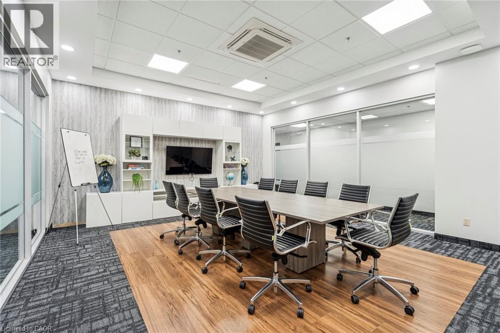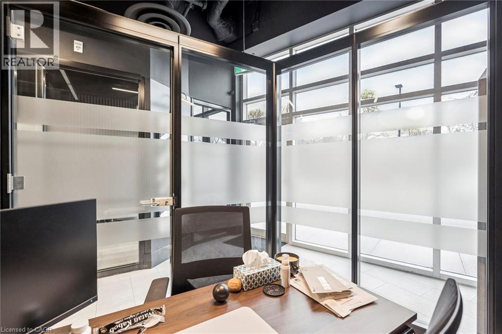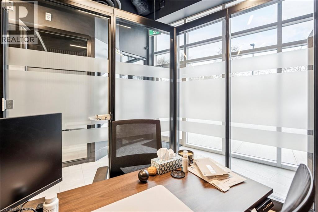 Ground-floor corner office suite in a new office condo building, offering 1,757 sq. ft. of well-planned space with 12' ceilings. The unit includes eight private offices, a boardroom, reception area, kitchenette, and private washrooms. The layout is flexible and can be easily adapted to an open-concept design if needed. Owners benefit from direct stair access to share amenities on the second and third floors, including a common boardroom and kitchen. The property is conveniently located with quick access to the QEW, 403 and 407 and is within walking distance of a newly developed retail centre offering food, daycare and other services. (id:4555)