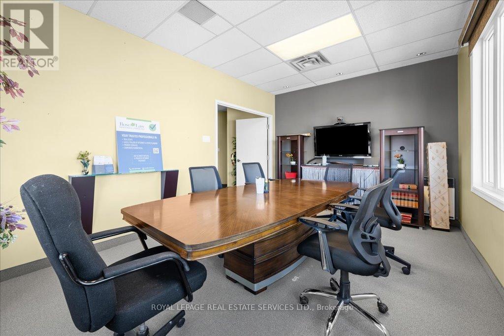 LIGHT-FILLED OFFICE CONDO IN A PREMIUM OAKVILLE CORPORATE HUB! A rare opportunity to own in one of Oakville's most desirable and well-maintained professional complexes. This highly visible second-floor end unit offers approximately 2,250 square feet with a smart, versatile layout that can be reimagined or used as-is. With its bright south-east corner orientation, the space is wrapped in windows, creating a natural light-filled setting that supports productivity and collaboration. The current design includes four private offices (with potential for a fifth), an open-concept bullpen, a large boardroom, two in-suite bathrooms, a kitchenette, and a dedicated storage area - ready to support a wide range of professional uses. The complex itself is professionally managed and provides abundant on-site surface parking for staff and visitors. Surrounded by a strong mix of medical, professional, and corporate tenants, the setting fosters credibility and connection. Strategically located minutes from the QEW, Oakville Place, the GO Train, and countless amenities - with public transit at the door - this property combines visibility, convenience, and long-term value. Whether you're an owner-occupier seeking move-in ready space or an investor looking to reposition and add value, this office condominium stands out as a flexible and future-proof opportunity. (id:4555)
