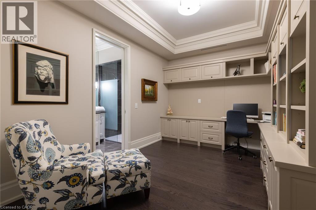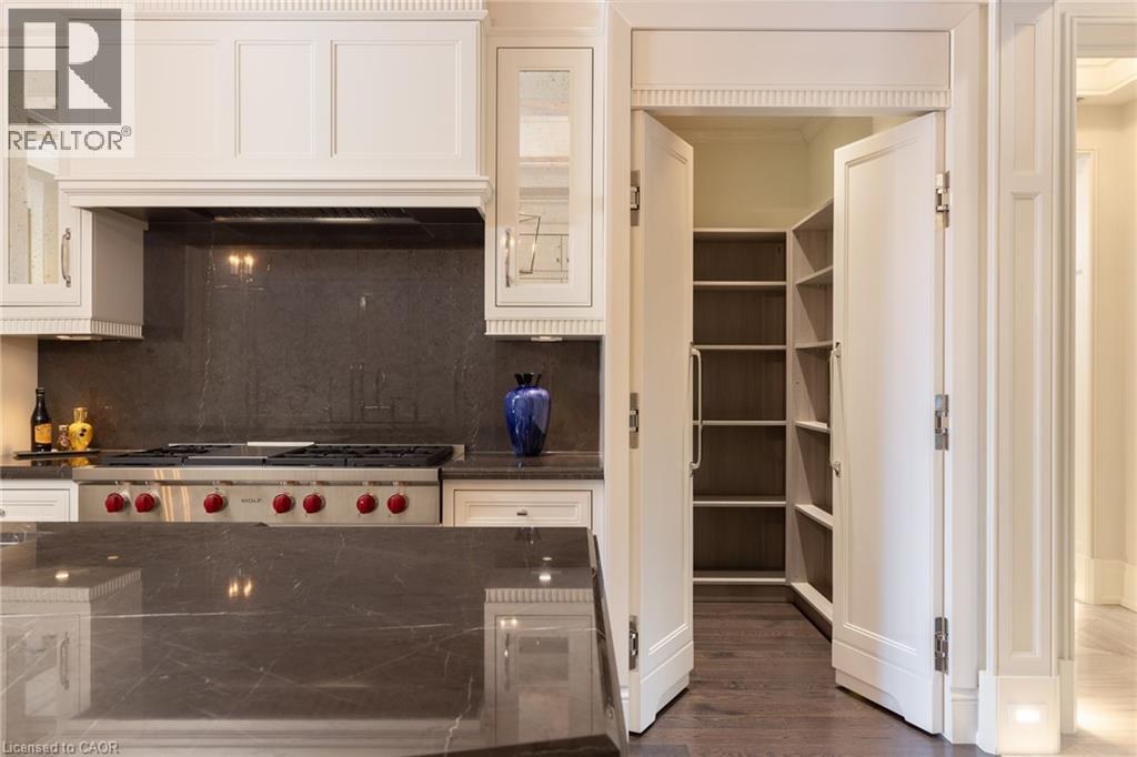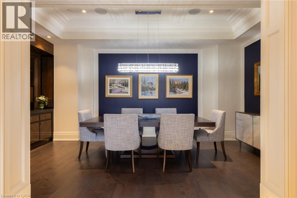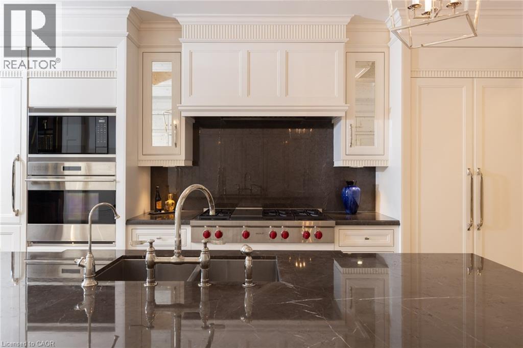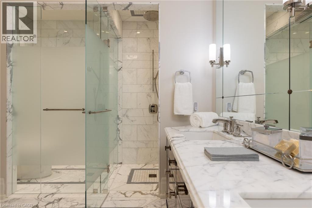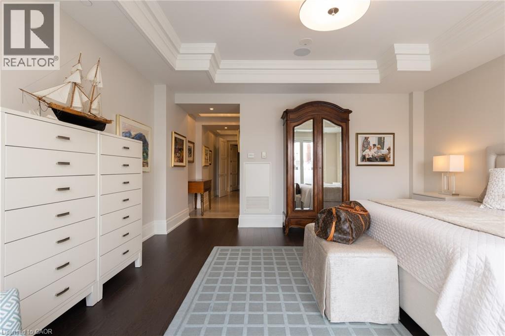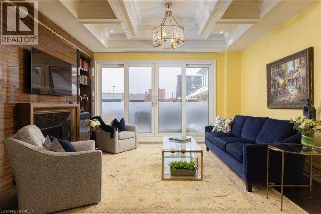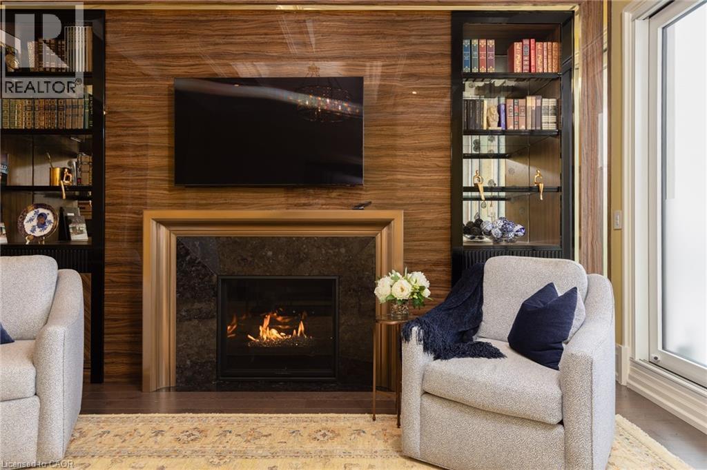 Discover True Luxury Living in This Exceptional Oakville Suite. Welcome to an extraordinary residence that redefines sophisticated condominium living. This stunning two-bedroom suite encompasses an impressive 2,290 square feet of meticulously designed living space, where every detail has been carefully curated to create an atmosphere of refined elegance. Upon entering through the grand rotunda, you are immediately greeted by exquisite slab marble flooring that establishes the tone for the opulence that awaits within. The thoughtful design continues throughout, featuring rich hardwood flooring, intricate millwork, and striking zebra wood accents that speak to the exceptional craftsmanship found in this home. The gourmet kitchen presents a culinary enthusiast's dream, complete with top-of-the-line Wolf, Subzero, and Miele appliances, a generous island for meal preparation and casual gatherings, plus an entire wall of pantry cupboards, and walk-in pantry for additional storage. The Great Room beckons relaxation with built-in cabinetry, and a warm gas fireplace. Step through to the private 335 sq ft terrace for morning coffee or evening contemplation. Entertain graciously in the separate dining room, showcasing zebra wood built-in cabinetry with dedicated wine storage. The primary bedroom suite offers terrace access, a walk-in closet, and a luxurious 4 pc ensuite featuring a vanity area, radiant heated floors and a pampering Kohler toilet ($8500 value). The 2nd bedroom functions beautifully as a home office with custom built-ins and its own 3 pc ensuite. Modern convenience abounds with the integrated Crestron system controlling music, lighting, and motorized blinds throughout. 2 side-by-side parking spaces and a storage locker complete this offering. Built by the acclaimed Rosehaven Homes, this residence sits moments from Lake Ontario, fine dining, boutique shopping, & provides effortless access to major transportation routes including the nearby transit station. (id:4555)