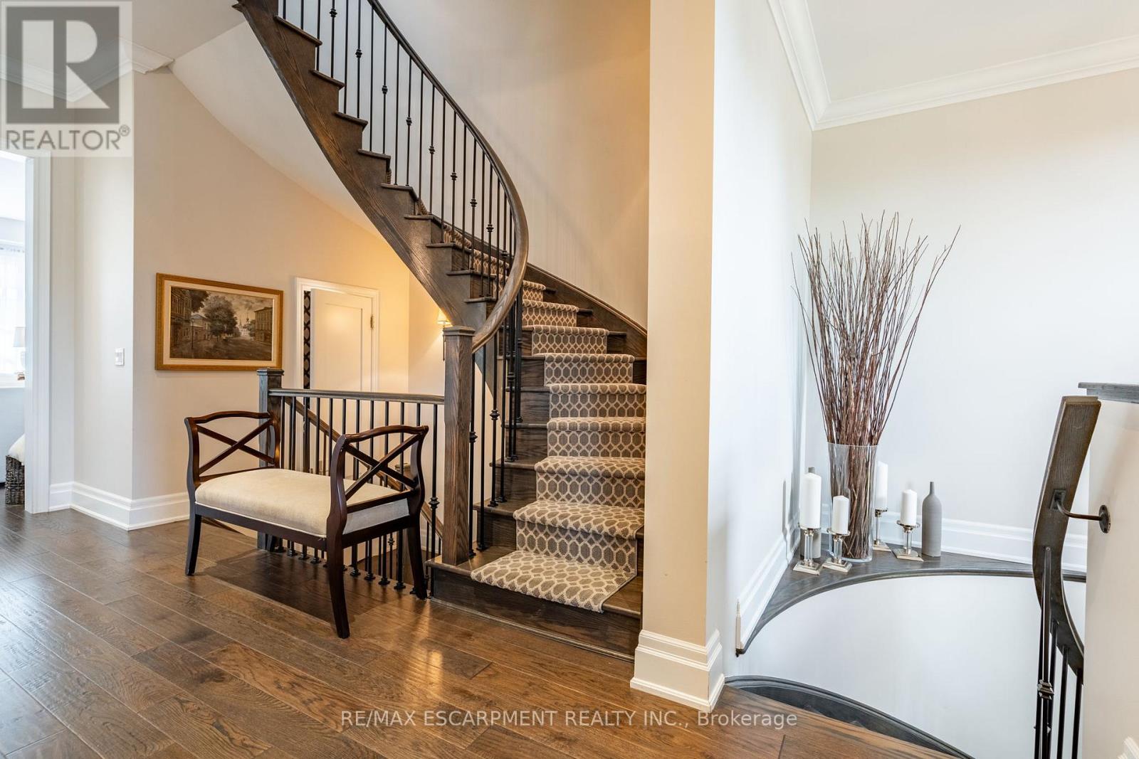 Stunning Fernbrook built town home within walking distance to downtown Oakville. Luxurious town with elevator allowing easy access to all four levels. No expense spared with the finishes throughout including spectacular temperature controlled wine wall in dining room, custom built-ins in family room, gorgeous kitchen, lovely gym with glass wall overlooking cozy rec room. Drive into your spectacular garage with custom built in cabinets, epoxy flooring and PVC paneled roof and walls with partial PVC slat wall. Enjoy a glass of wine or an al fresco dinner on your private rooftop garden. What a lifestyle! Let's get you home! (id:4555)