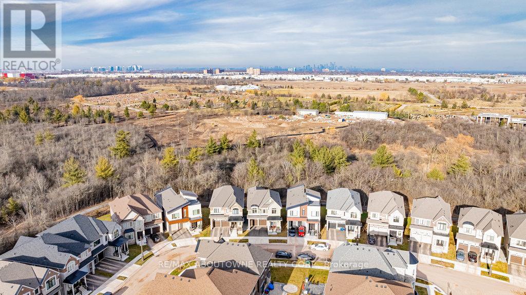 Welcome to 1456 Ford Strathy Cres, an exceptional Mattamy Winfield model situated on a premium ravine lot in Oakville's highly sought-after Upper Joshua Creek community. The seller invested an impressive $255,000 lot premium to secure this rare, private setting with no rear neighbours, creating a truly special backdrop for everyday living. Offering approximately 3,109 sq ft of beautifully finished space and over $150,000 in builder upgrades, this home is tastefully designed and completely move-in ready. Soaring 10' ceilings on the main level and 9' ceilings on the upper and lower levels enhance the home's bright, open feel. White oak engineered hardwood flows throughout, complemented by a vaulted great room ceiling, gas fireplace, triple-glazed windows, and an abundance of natural light with serene ravine views. The modern white kitchen is both stylish and functional, featuring quartz countertops, soft-close cabinetry with pot drawers, and an oversized island with breakfast bar-perfect for everyday living and entertaining. The open-concept great room and dining area provide an inviting space to gather, while the practical mudroom with inside garage access adds everyday convenience. Upstairs, the primary suite offers a tranquil retreat with tray ceiling, walk-in closet, and spa-inspired ensuite with freestanding soaker tub and glass-enclosed shower. Three additional generous bedrooms, two full bathrooms, a laundry room, and an open loft overlooking the great room complete the upper level. The unfinished walkout basement boasts 9' ceilings, oversized sliding doors, bathroom rough-in, and large storage-offering outstanding potential to customize your dream space. Located on a quiet crescent, close to parks, trails, shopping, dining, and major highways, this home blends luxury, privacy, and lifestyle in one remarkable offering. Welcome to your forever home! (id:4555)