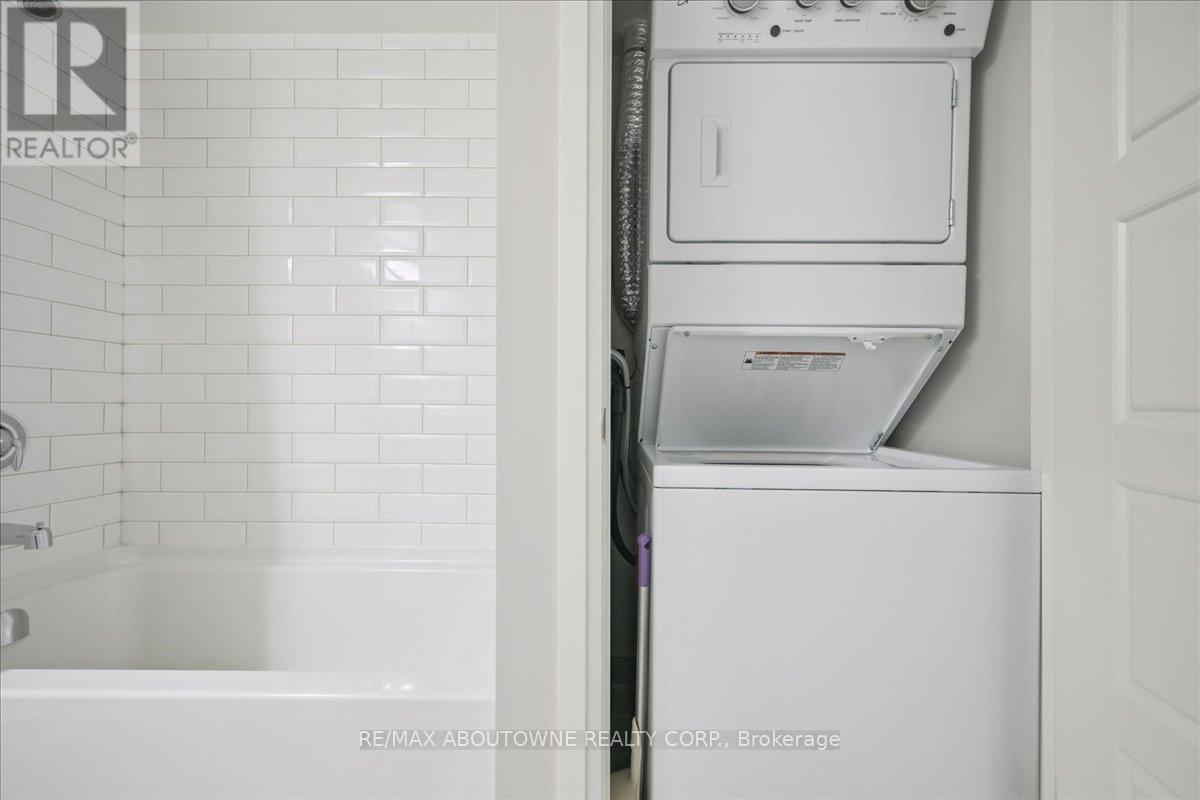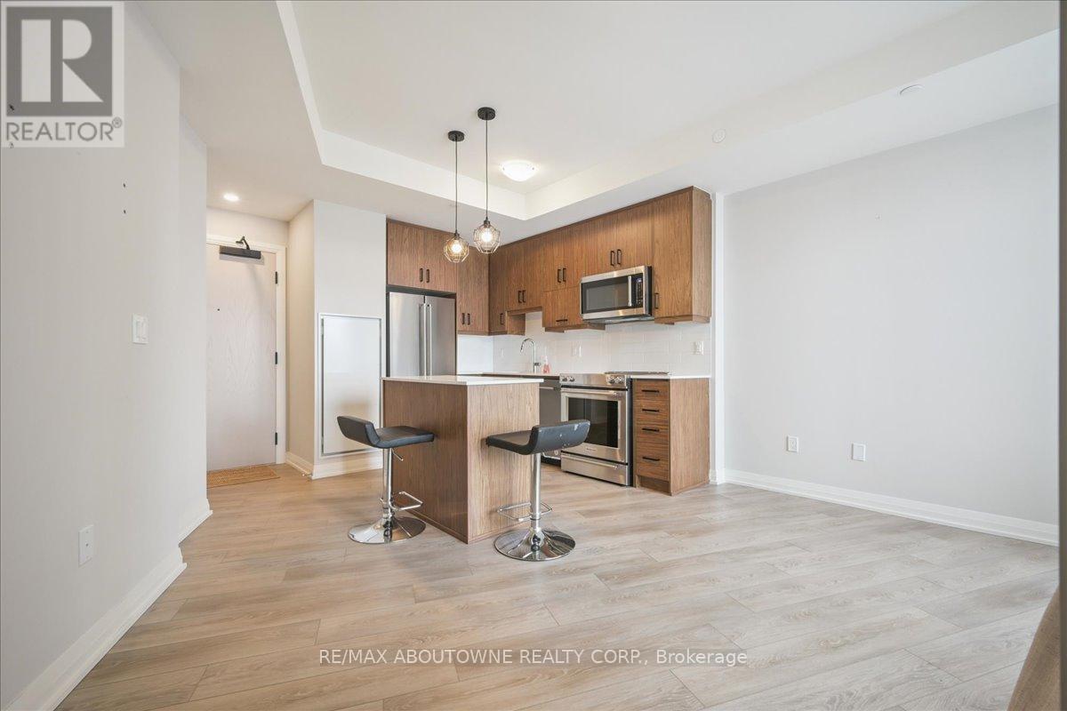 Experience modern living in this brand new luxury 1-bedroom plus den condominium located in the sought-after Upper Joshua Creek neighbourhood of Oakville. The south-facing unit boasts a spacious balcony, providing ample sunlight and an inviting outdoor space. Its excellent open-concept layout is complemented by 9-foot smooth ceilings and stylish laminate flooring throughout. Bedroom: Generously sized with a large closet for ample storage and 4pc ensuite; Kitchen: Equipped with granite countertops, a decorative backsplash, a centre island, and plenty of storage for your culinary needs; Den: Ideal for a home office or study area. Main Bathroom: Contemporary four-piece bath; Laundry: Convenient in-suite laundry with stacked washer and dryer. Located in the heart of Oakville, this residence offers unparalleled convenience. It is close to restaurants, shops, public transit, and major highways such as Highway 403. The property is ideally situated near the Mississauga border and GO Transit, ensuring easy commuting. Upscale shopping and fine dining are just moments away, making this an exceptional place to call home. Additional features: Internet included. One parking space (P2 36) and one locker (P2 279) provided. Cleaning Service Available - Ask LA for details. (id:4555)