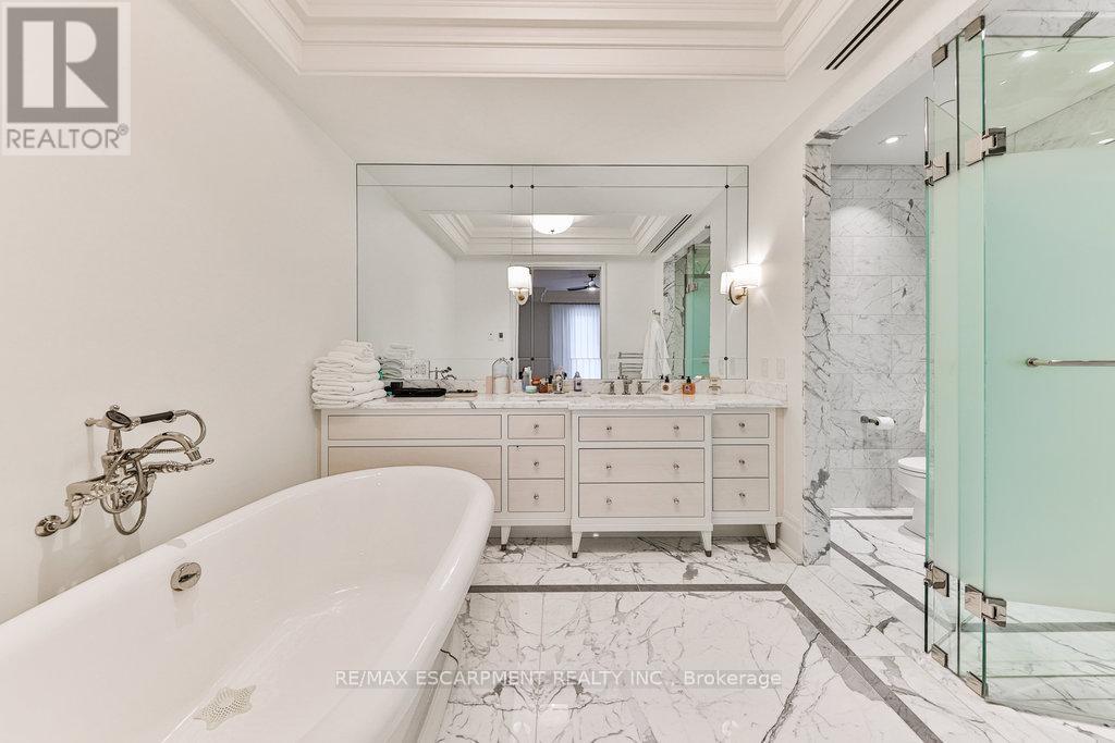 Welcome to The Randall Residences - Oakville's most prestigious address, where luxury meets timeless elegance in the heart of downtown. This exceptional corner suite offers sun-drenched south and west exposure with windows in every principal room. The grand primary retreat features two full ensuites, two walk-in closets, a spacious sleeping area, and walk-out to a private balcony. The open-concept kitchen flows seamlessly into the formal dining and expansive living room with fireplace. A marble-clad foyer and exquisite millwork throughout speak to unmatched quality. The second bedroom offers a private ensuite and custom closets. Enjoy a walk-in laundry room with sink and storage, powder room, two premium parking spots, and locker. Impeccably maintained building with 24/7 concierge, security, and rooftop terrace. Just steps to fine dining, boutiques, and the lake. A rare opportunity to live amongst an exclusive, refined community in Oakville's most coveted location. (id:4555)