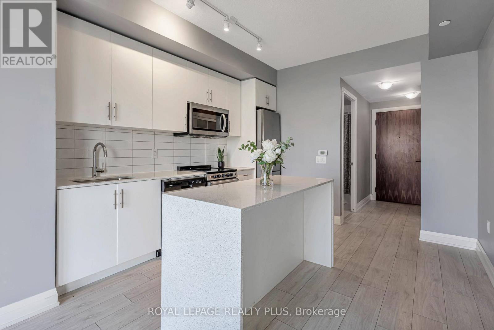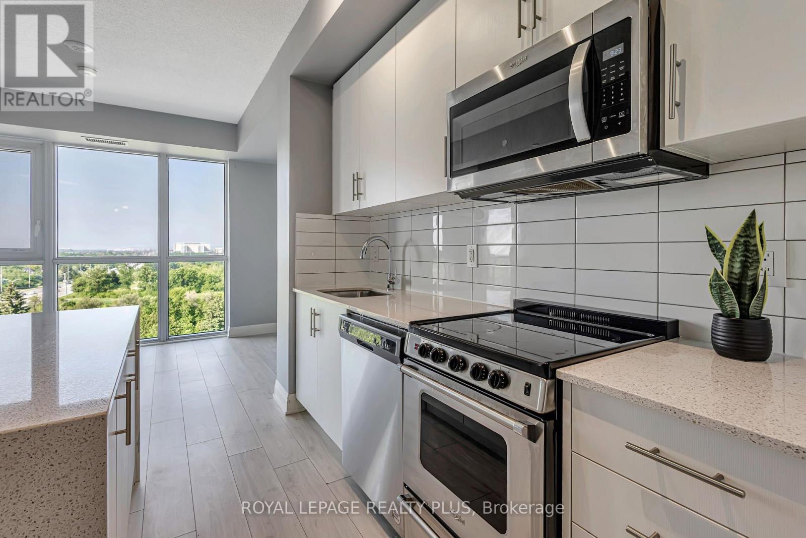 Welcome to Dunwest Condo in prestigious North Oakville-where modern design meets everyday convenience. This sparkling clean, open-concept 1-bedroom suite offers stylish, turnkey living in a sought-after Greenpark development. The contemporary kitchen is an entertainer's dream, featuring stainless steel appliances, ample cabinetry, and a centre island perfect for casual dining or hosting. The bright living space is enhanced by oversized windows and 9-foot ceilings, creating an airy, open feel throughout. Step out to your private balcony and enjoy stunning western exposure with breathtaking sunset views.This well-appointed unit includes a conveniently located parking space and locker close to the elevators and stairs for added ease.Residents enjoy first-class amenities including a fully equipped fitness centre, games room with billiards, media room, co-working stations, elegant party room, 24-hour security, and a sun-filled rooftop terrace.Ideally situated adjacent to a vibrant retail plaza offering groceries, banking, health services, cafés and more. Just minutes to Oakville Trafalgar Memorial Hospital, major highways, and public transit-making commuting simple and convenient.An exceptional opportunity to own in one of Oakville's most desirable communities. (id:4555)