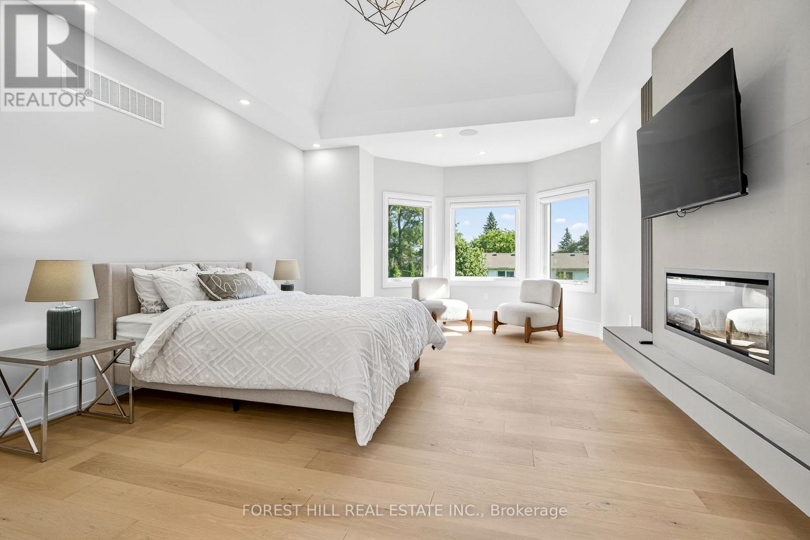 Exceptional custom-built family home in Oakville featuring a massive heated concrete driveway for up to 10 cars, RARE 12-13 ft ceilings in every bedroom, and a front balcony with cozy retreat vibes, set on a deep private lot with no homes in front and serene park views. Offering approx. 4,300 sq ft above grade plus a 2,200 sq ft walk-up basement, this home blends luxury, comfort, and smart living just minutes from the lake and Downtown Oakville. Fully integrated with a Control4 system, built-in speakers, and security cameras, it also features heated washroom floors, 2 furnaces and 2 A/C systems, elegant lighting, and custom window coverings throughout. The stunning chef's kitchen showcases a massive island, servery, pantry, custom wine racks, and premium Wolf and Sub-Zero appliances. The second floor offers a beautiful sitting area anchored by a massive skylight flooding the home with natural light. The walk-up basement includes a huge bedroom, spacious recreation area ideal for entertaining or a home gym, and a wine cooler. Outdoor living is elevated with a covered backyard patio with fireplace, while the exterior impresses with metal roofing, professional landscaping, mature backyard trees, and a full sprinkler system. Located near top-rated schools, parks, and community centres, this is a rare opportunity to own a meticulously designed smart luxury home on one of Oakville's most desirable lots. (id:4555)