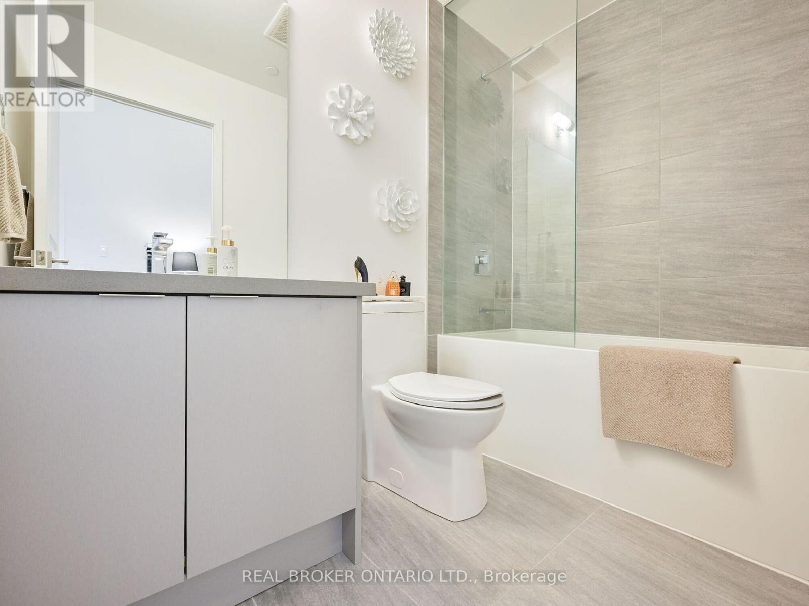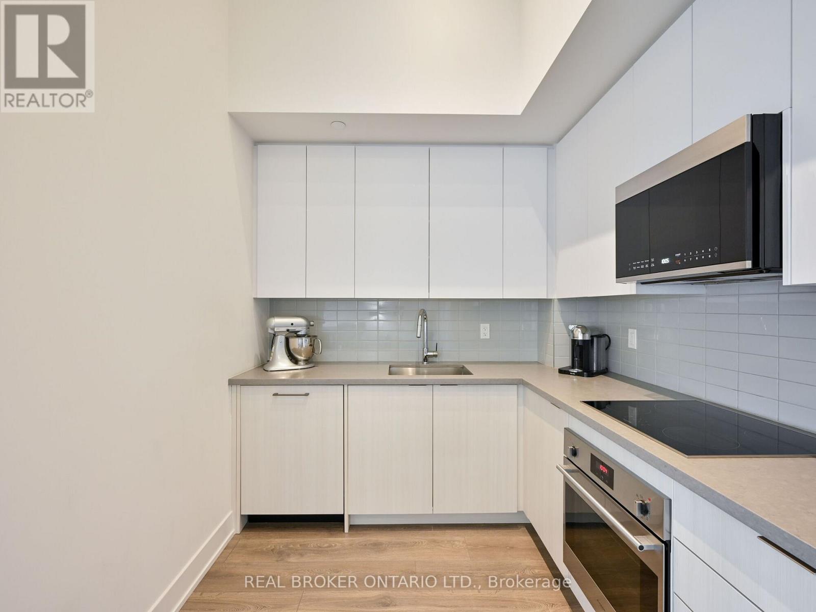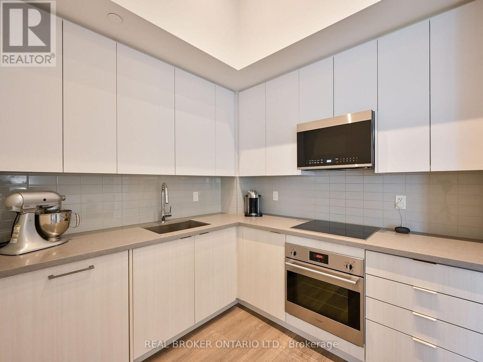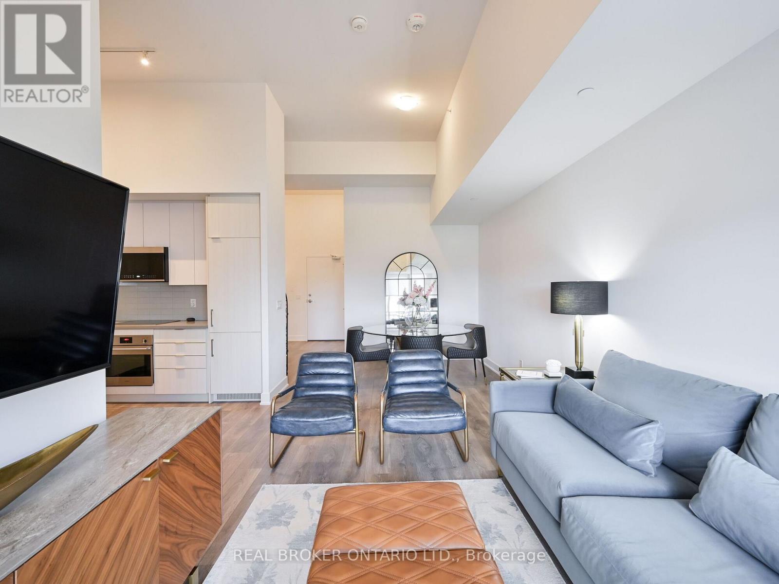Owner occupied, never rented, in pristine condition 1+1, with rare soaring 12-foot ceilings, that set the tone in this bright, stylish condo, creating an open and airy feel throughout. Step out onto a large private balcony overlooking a peaceful ravine, with no unit above-a rare combination of privacy and nature views. The upgraded kitchen features custom cabinet paneling over the refrigerator and dishwasher for a seamless, high-end look. Convenience is key with a locker located on the same floor, just steps from the unit. Enjoy premium building amenities including a terrace BBQ area, outdoor pool, and fully equipped gym, perfect for both relaxing and entertaining. (id:4555)