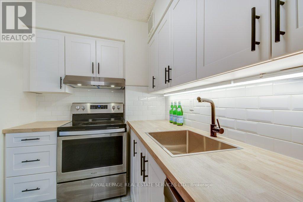 Welcome to Arbour Glen, a well-regarded, quietly set-back building in the heart of Kerr Village. This spacious, sun-filled 2-bedroom condo offers approximately 960 sq ft of bright, well-proportioned living space on a high floor, a rare sense of privacy with peaceful south-facing views above the tree line, stretching toward the Lake. South exposures provides natural light, while mature greenery and park views create a calm backdrop from the living area and balcony. The unit is notably quiet, with the building set well back from the street. Recent improvements include a newly renovated kitchen with clean, modern finishes, new vinyl flooring, updated bathroom details, stainless steel appliances, new light fixtures, and freshly painted interior throughout. Walk to many shops, restaurants, downtown Oakville, Kerr Village, the lakefront, and convenient transit, with Oakville GO Station and major highways just minutes away. Where else can you get this square footage in this location at this price point? An excellent opportunity for first-time buyers, downsizers, professionals, or investors seeking space, light, and walkability in one of Oakville's most established neighbourhoods. (id:4555)