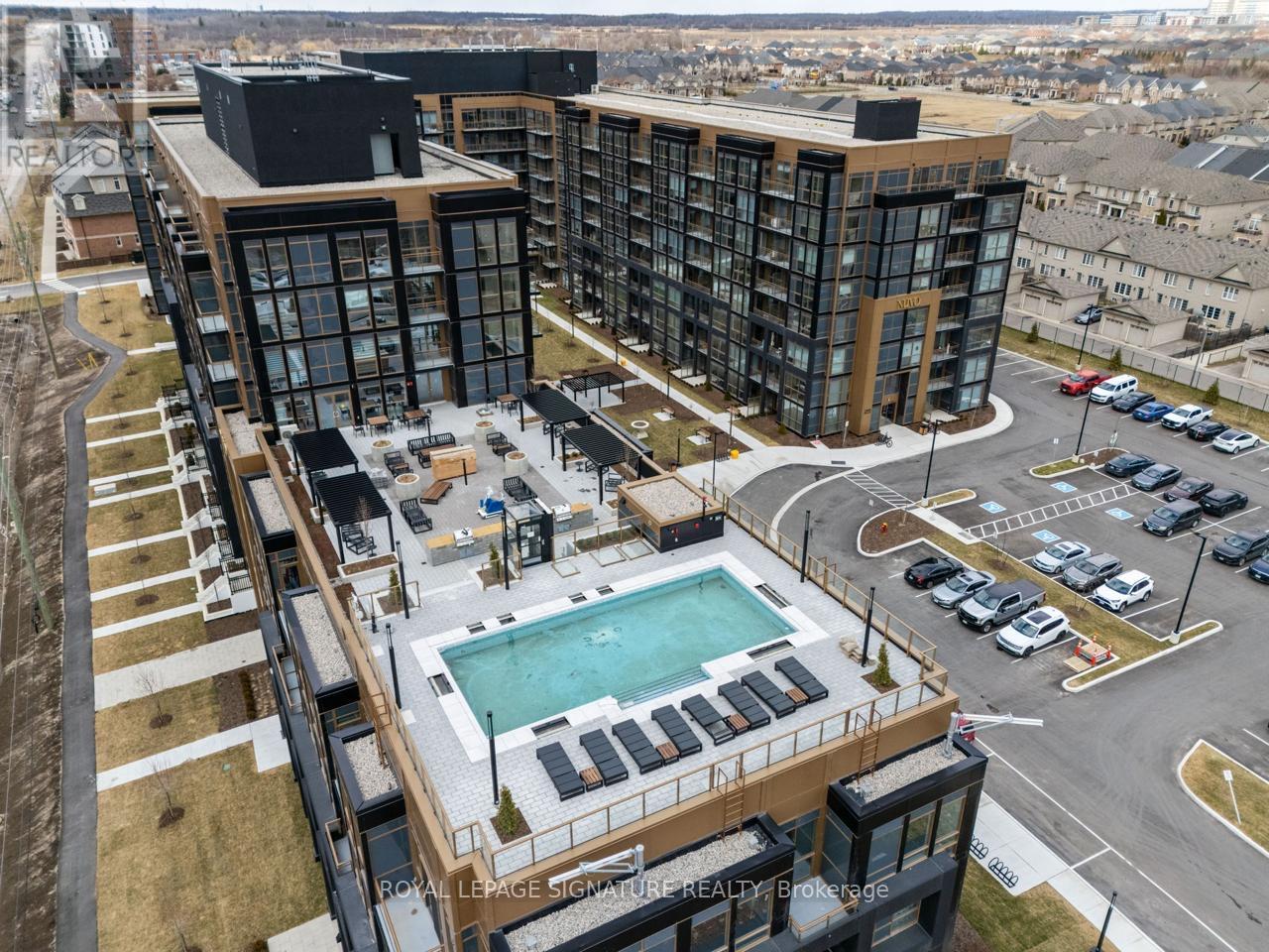 Absolutely Must See! One-year-old Fernbrook NUVO Resort-Style Condo. Stunning 1-bedroom + DEN, 2-bath unit just under 600 sq. ft., featuring 9' smooth ceilings, wide plank flooring, and custom wall panelling in the primary bedroom and den. Open-concept living and kitchen with a modern chef's kitchen, stone countertops, extended cabinetry, kitchen island, subway tile backsplash, and premium stainless steel appliances. Enjoy sunset views from your private balcony. Spacious bedroom, custom closet cabinetry, large windows and a private 3-pc ensuite, plus a beautiful den with wainscotting w/frosted glass sliding doors ideal for an office or a nursery. Includes in-suite laundry, smart home keyless entry, 1 parking space, and 1 locker. Resort-style amenities include rooftop lounge, outdoor pool, fitness centre with Peloton bikes, party/media room, putting green, sports areas, community gardens, pet wash, bike station, and car wash. Prime location near schools, shopping, hospital, transit, highways, trails, and much more! (id:4555)