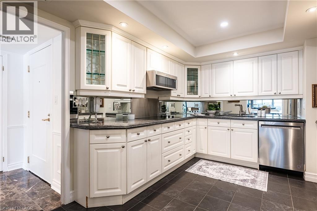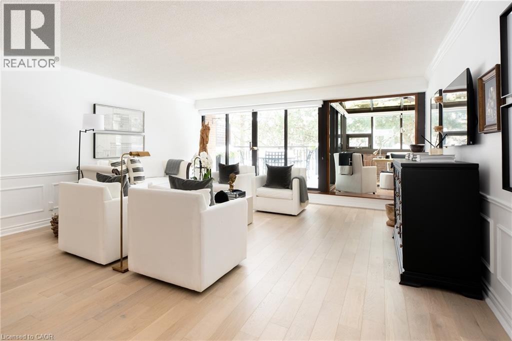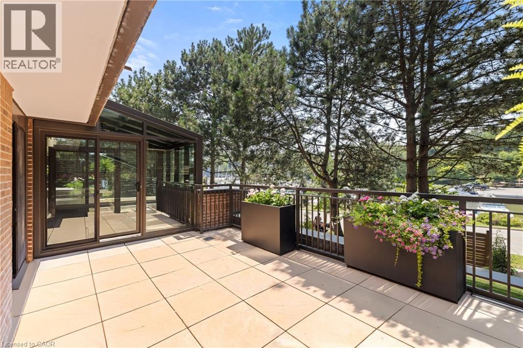 There's a certain calm that comes from living beside the water - and Suite 201 at 100 Lakeshore Road East captures it beautifully.Set within The Granary, one of Oakville's most established and sought-after waterfront residences, this second-floor suite offers a rare combination of privacy, scale, and permanently protected harbour views. Overlooking Sixteen Mile Creek, with mature trees framing the outlook, the setting feels peaceful and removed - yet steps from downtown, the harbour, and Lakeshore amenities.Inside, approximately 1,760 square feet of renovated living space is defined by generous proportions and exceptional natural light. The living and dining rooms flow effortlessly, ideal for both quiet evenings and hosting family and friends. Wide-plank light oak hardwood flooring, updated finishes, and a refreshed kitchen with updated stainless steel appliances bring a clean, timeless feel throughout.What truly sets this home apart are the outdoor spaces. Two expansive west-facing terraces - totalling approximately 365 square feet - extend the living experience outdoors. With five walk-outs, no overhang above, and open skies overhead, these terraces are sun-drenched, private, and perfectly positioned for afternoon light and evening sunsets.The primary bedroom offers a true retreat, complete with a walk-in closet, four-piece ensuite, and terrace access. A second bedroom with its own walk-out and walk-in closet provides versatility, while a dedicated laundry room and abundant storage add everyday convenience.Parking and locker are located on the same level as the suite, eliminating the need for elevators, and a nearby side stairwell provides direct access to Lakeshore Road. Quiet, and timelessly positioned, this is waterfront condo living without compromise. (id:4555)